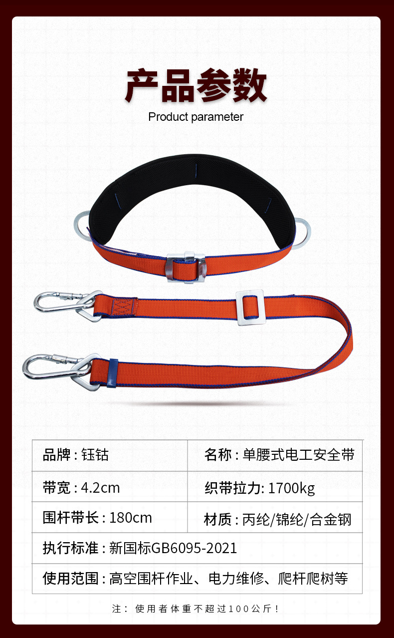 전기 안전 벨트 트리 클라이밍 바 원 포인트 파워 벨트 나일론 더블 안전 로프 국가 표준 단일 허리 인클로징 바스토어 가기