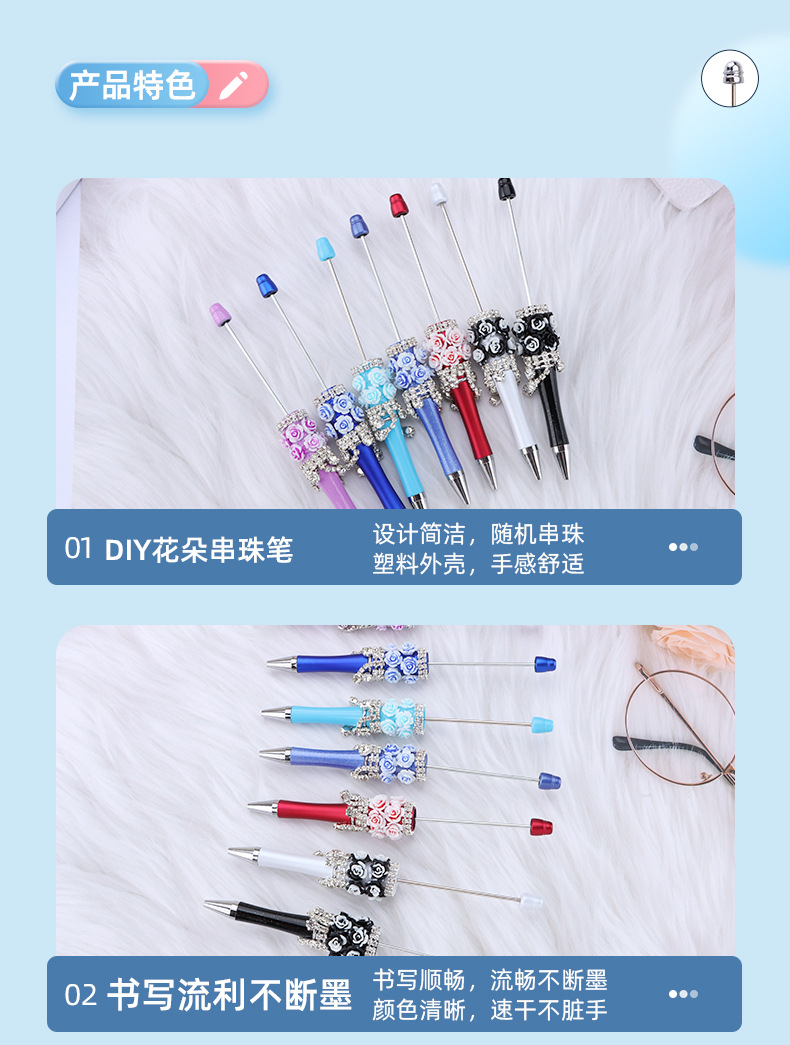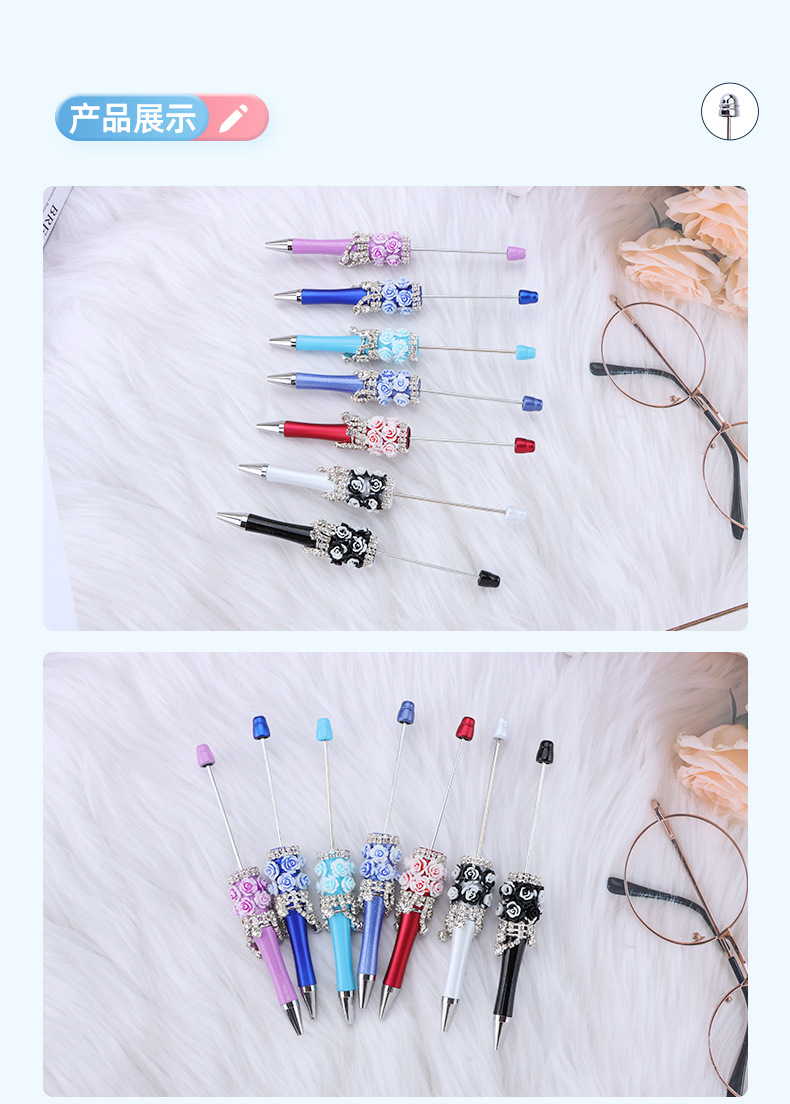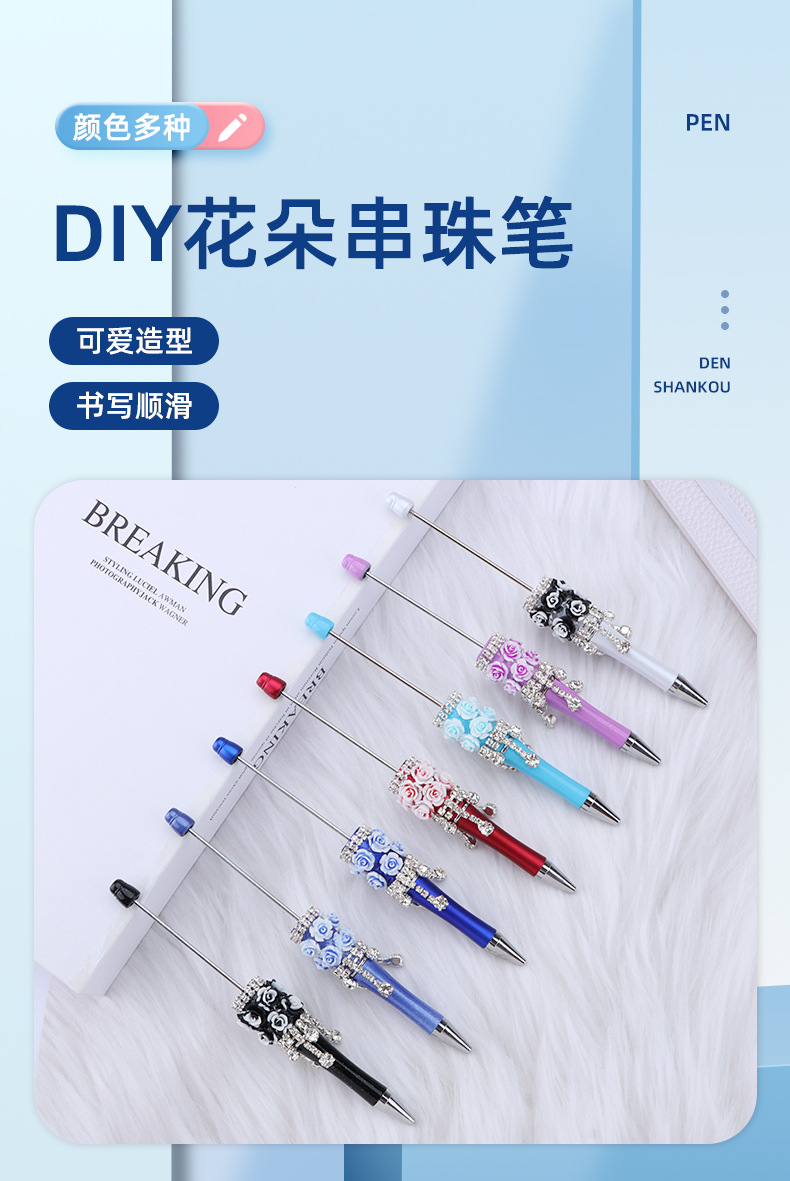DIY 장미 꽃 구슬 펜 창조적 인 수제 절묘한 구슬 펜 다색 진주 선물 펜 도매