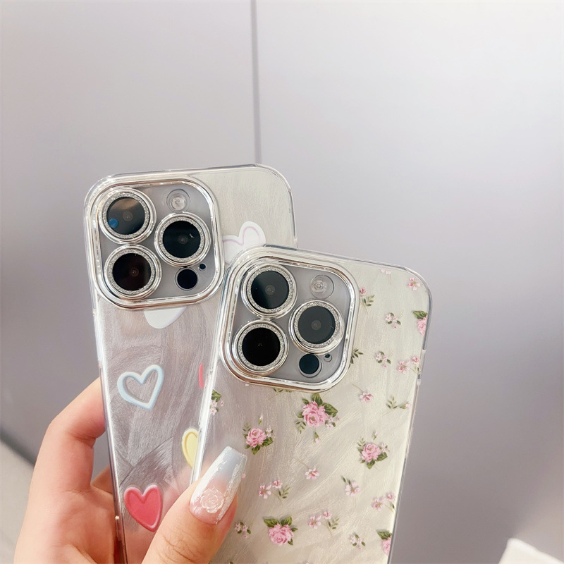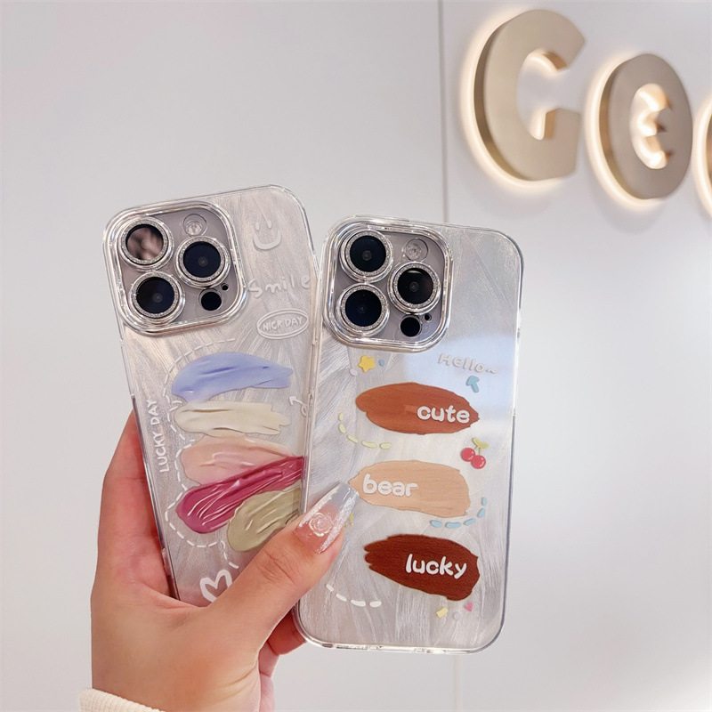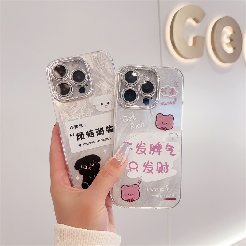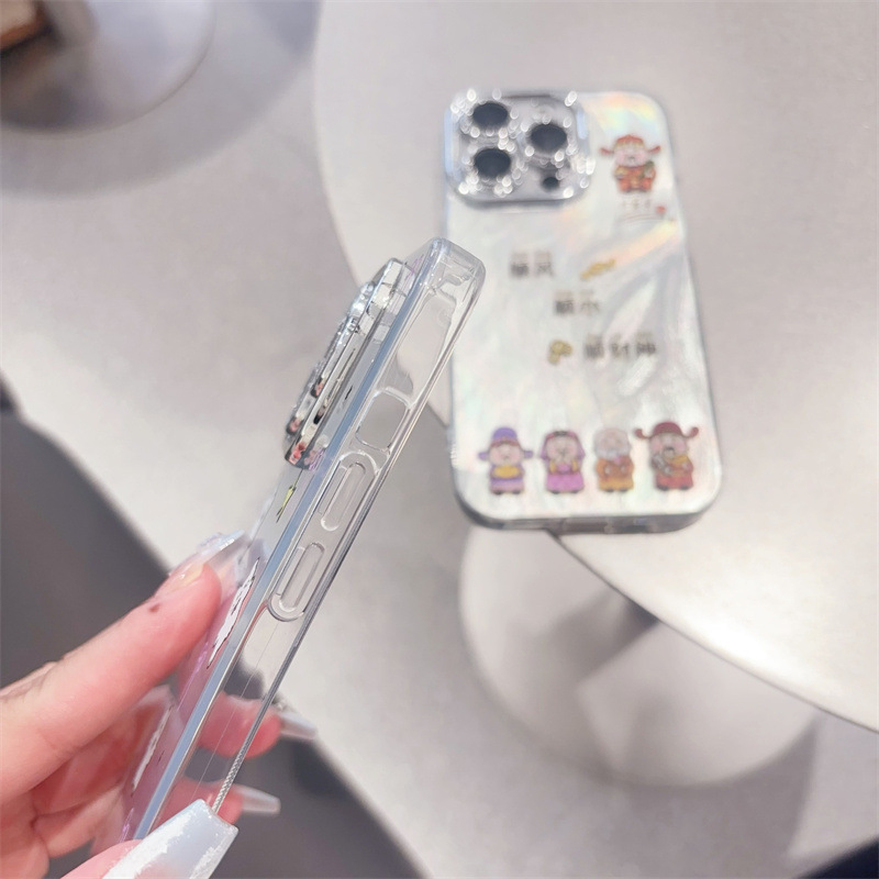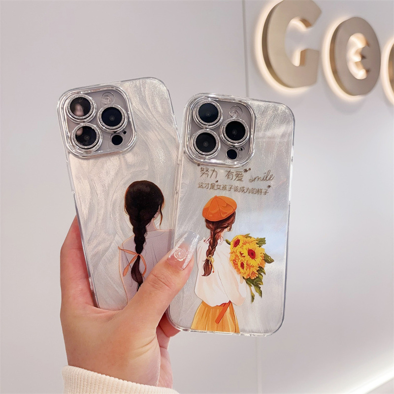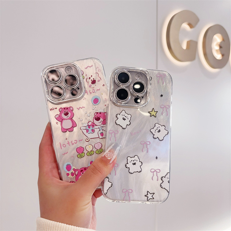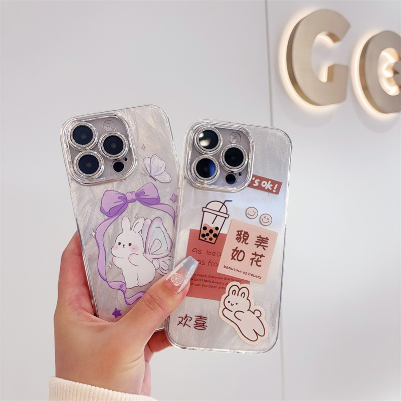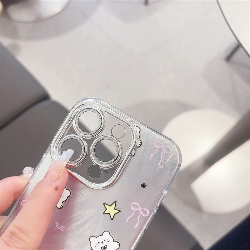 애플 16PRO 만화 전화 케이스 iphone15 드릴 14 보호 커버가있는 모든 것을 포함하는 렌즈에 적합한 미세 구멍 깃털 원사스토어 가기