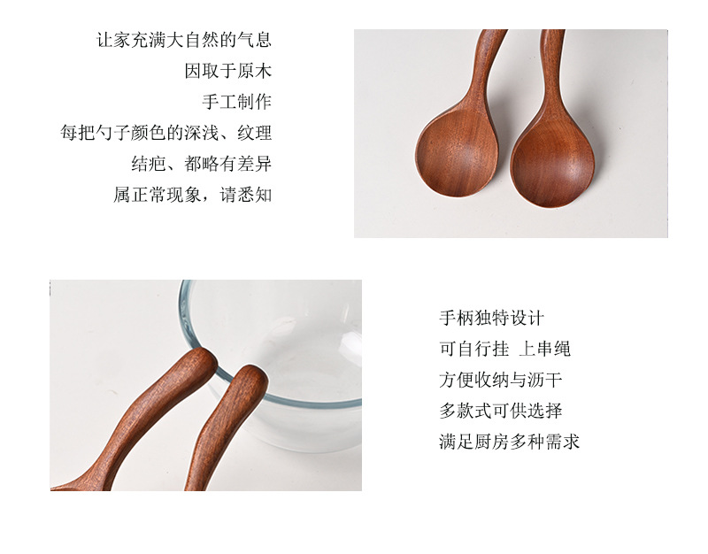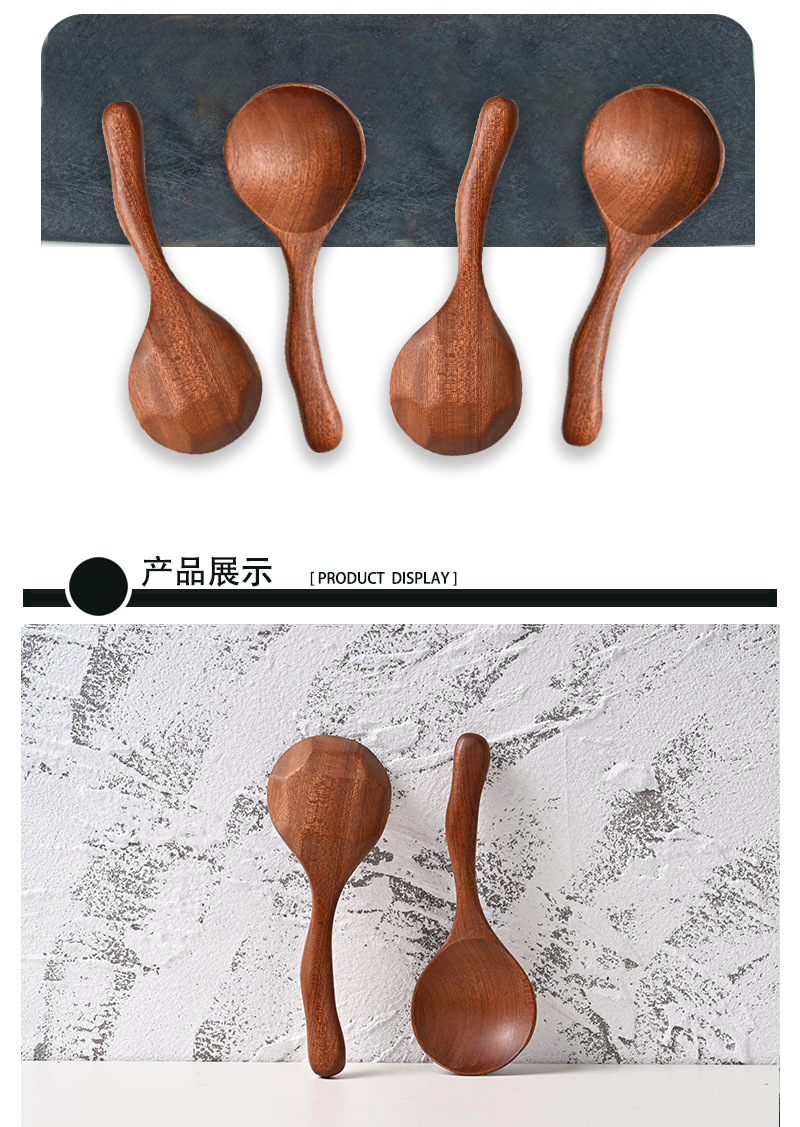 사브리 나무 숟가락 식사 숟가락 나무 수프 스푼 커피 스푼 꿀 숟가락 혼합 스푼 전체 재료 긴 손잡이 둥근 숟가락
