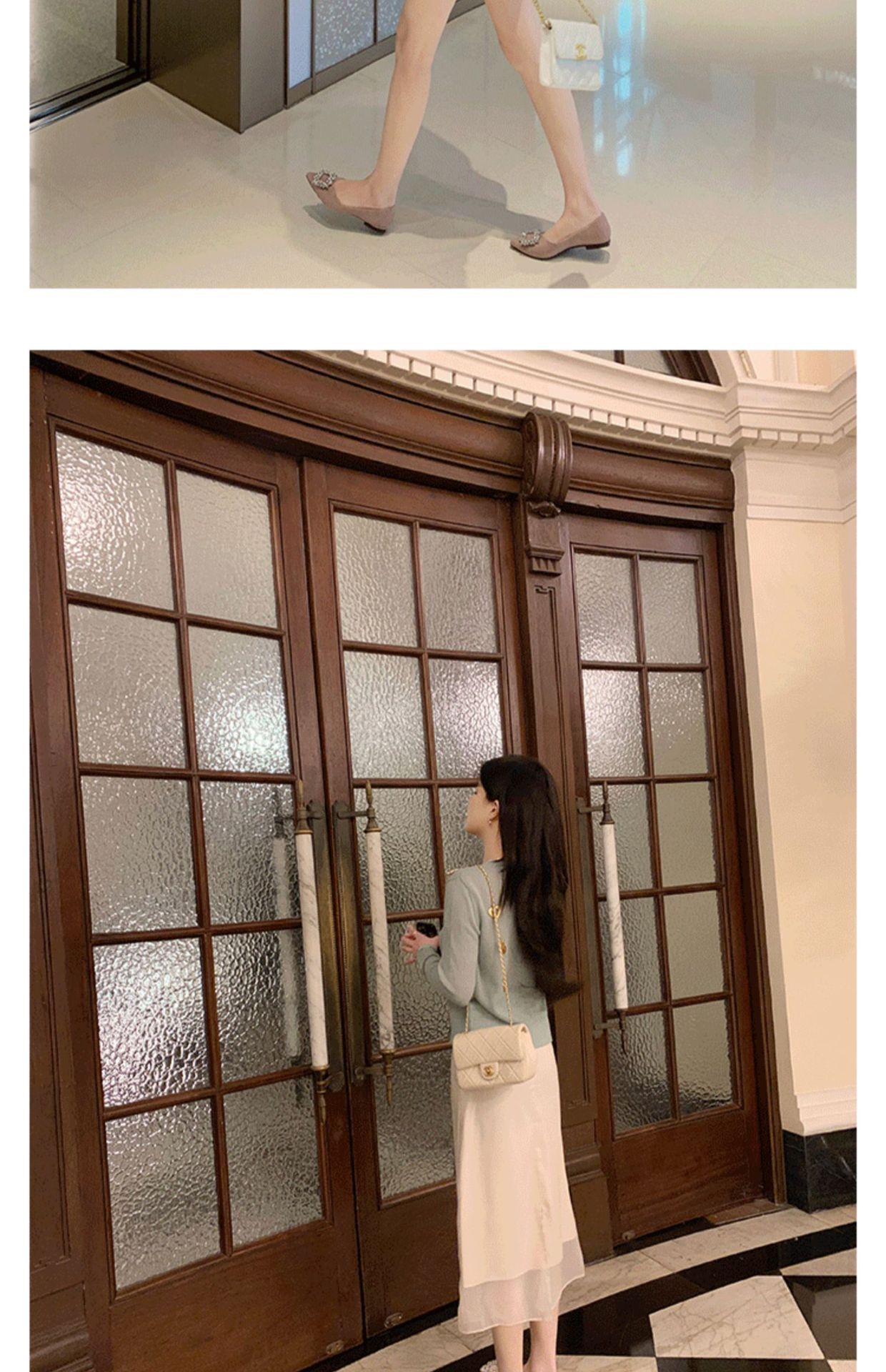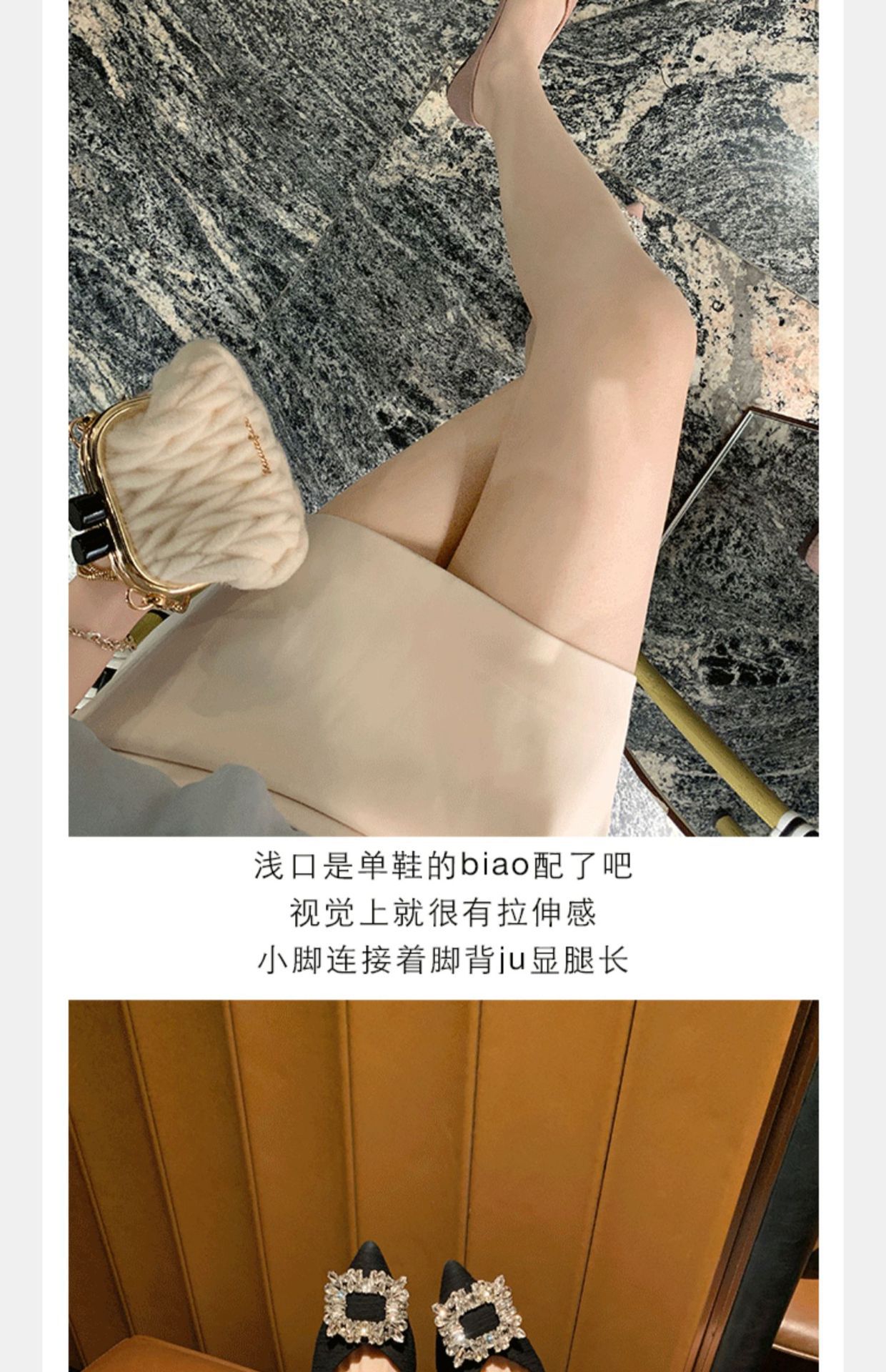 재고 봄과 가을 프랑스 스타일 기질 뾰족한 작은 향기로운 스타일 라인석 얕은 입 요정 플랫 힐 신발 블랙 플랫 싱글 신발