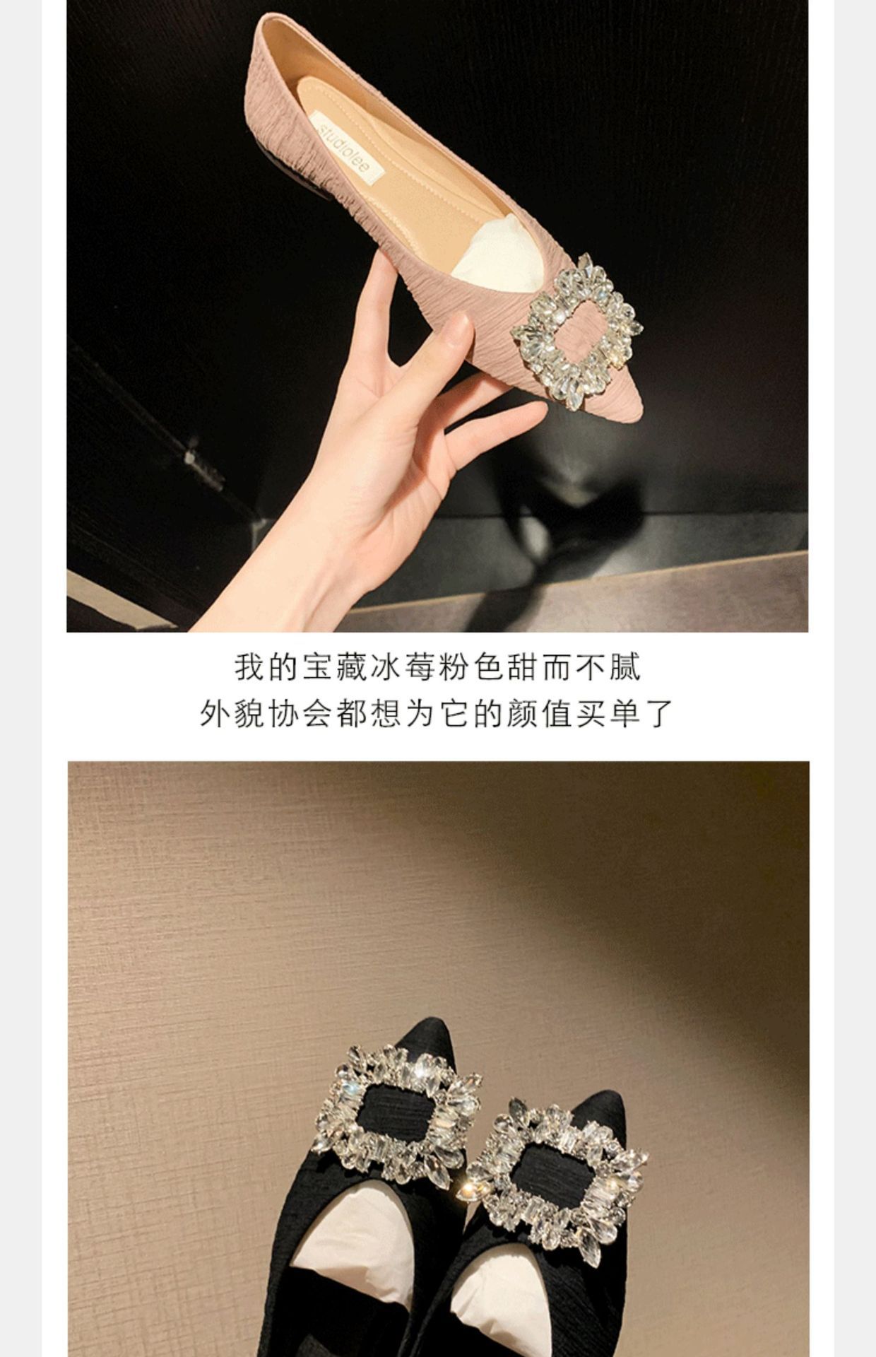 재고 봄과 가을 프랑스 스타일 기질 뾰족한 작은 향기로운 스타일 라인석 얕은 입 요정 플랫 힐 신발 블랙 플랫 싱글 신발스토어 가기