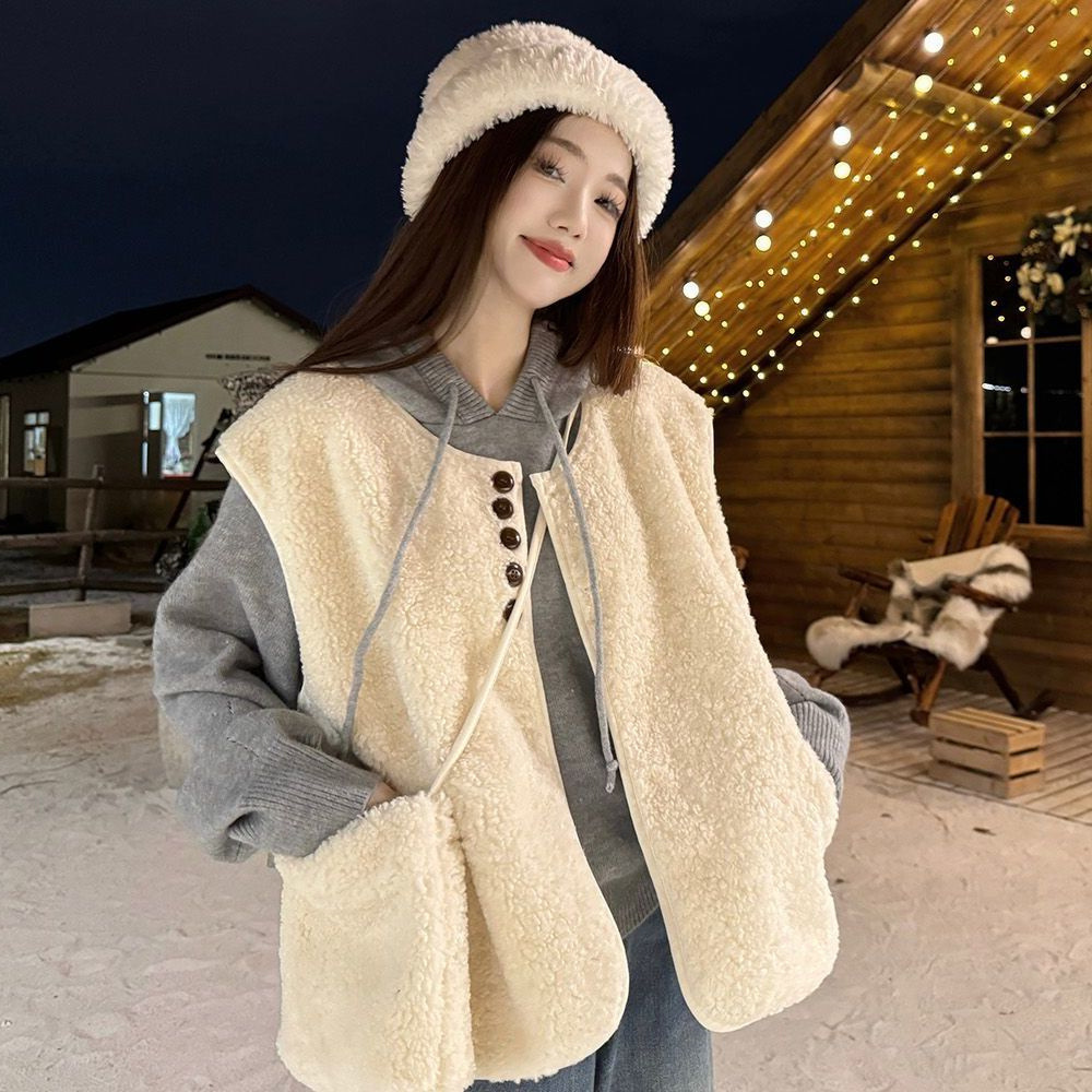 원피스 양모 조끼 재킷 여성의 겨울 짧은 느슨한 나이 감소 캐주얼 탑 캐주얼 가방