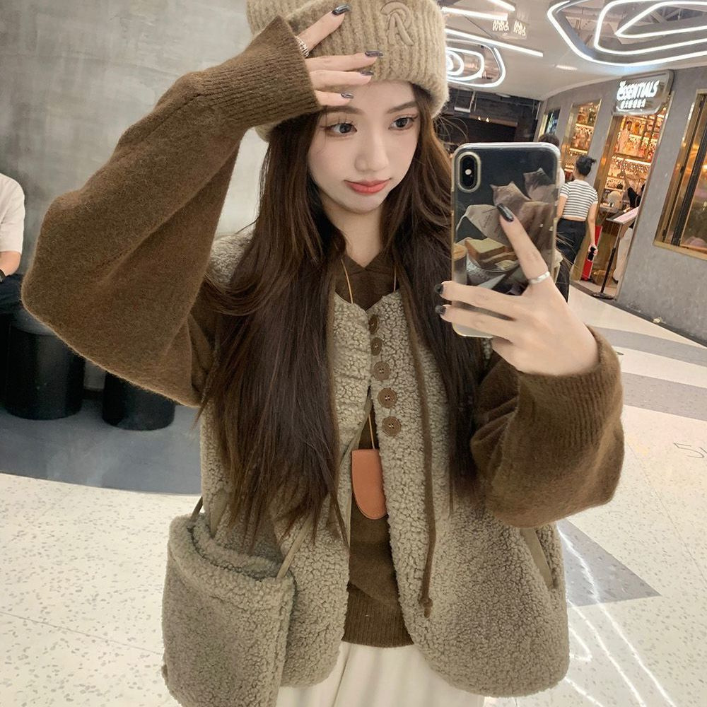 원피스 양모 조끼 재킷 여성의 겨울 짧은 느슨한 나이 감소 캐주얼 탑 캐주얼 가방스토어 가기