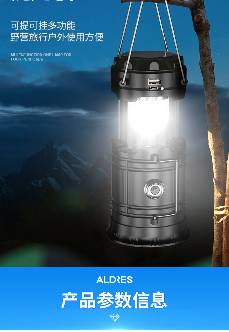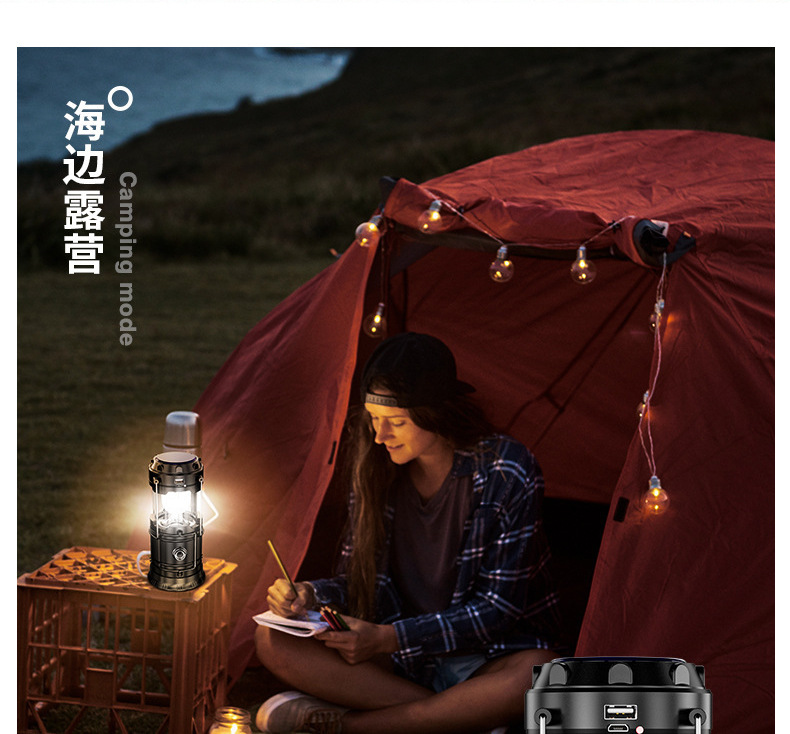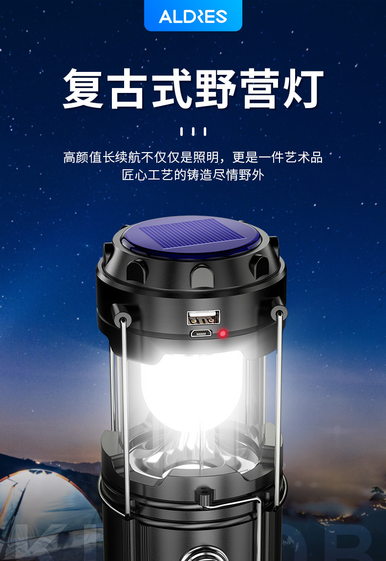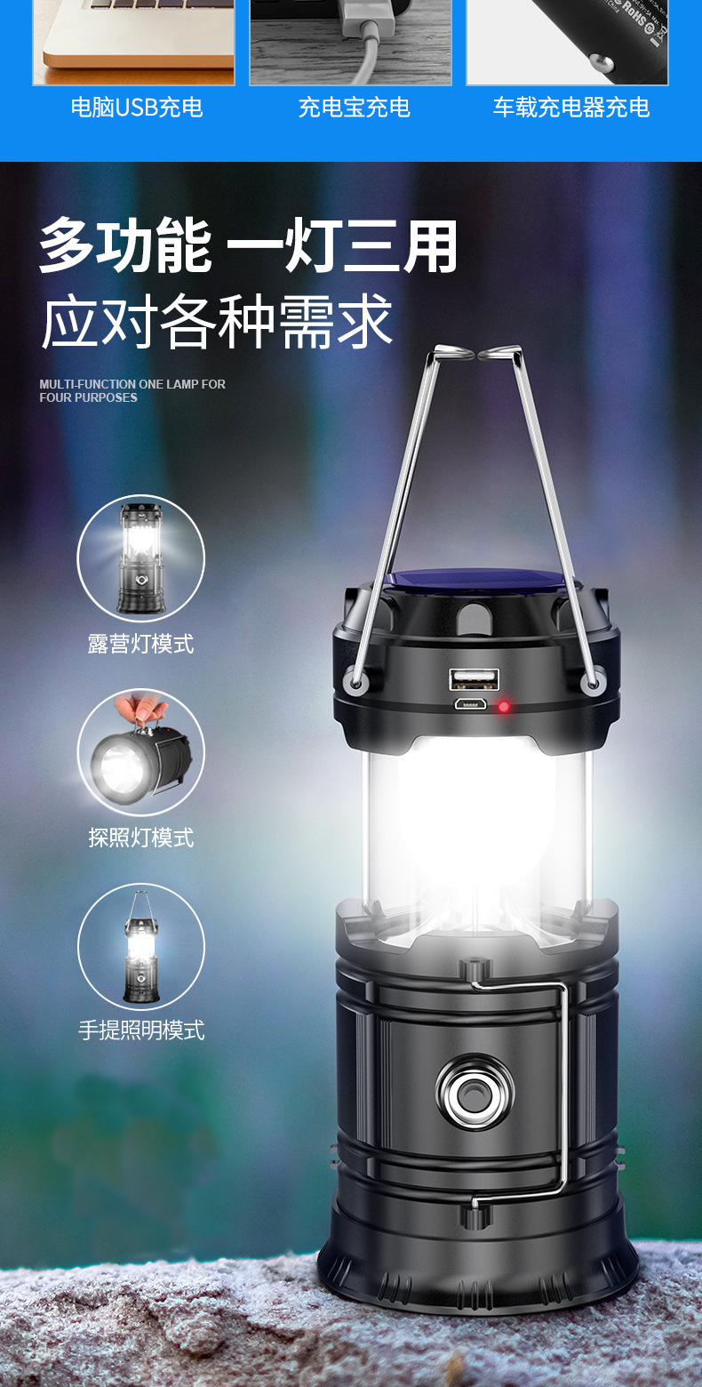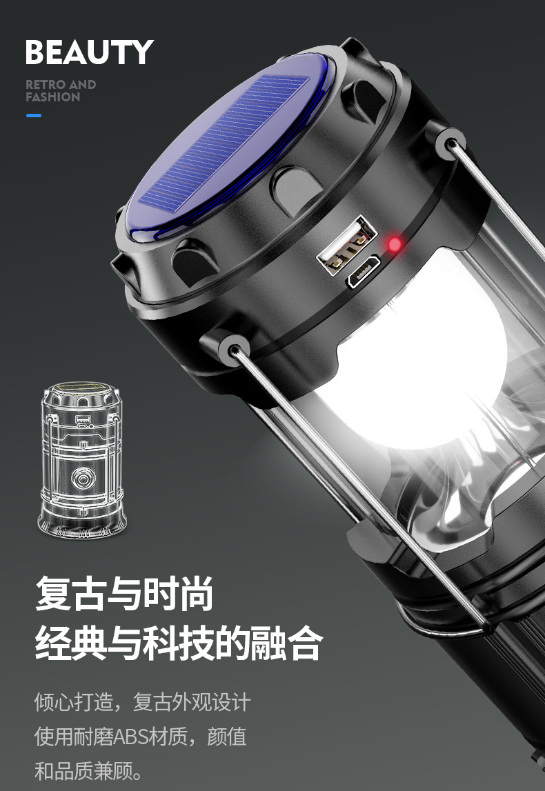 캠핑 가벼운 말 램프 다기능 스트레치 태양 충전 휴대용 캠핑 야외 텐트 비상 조명
