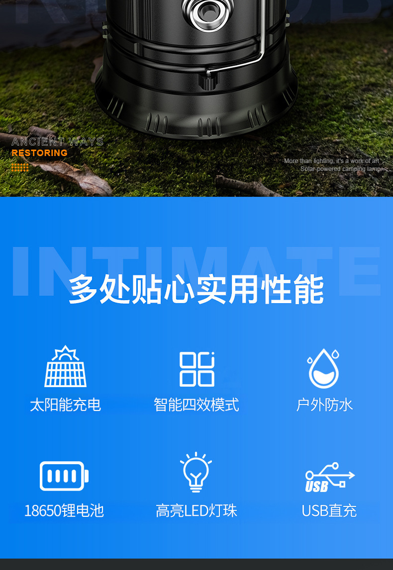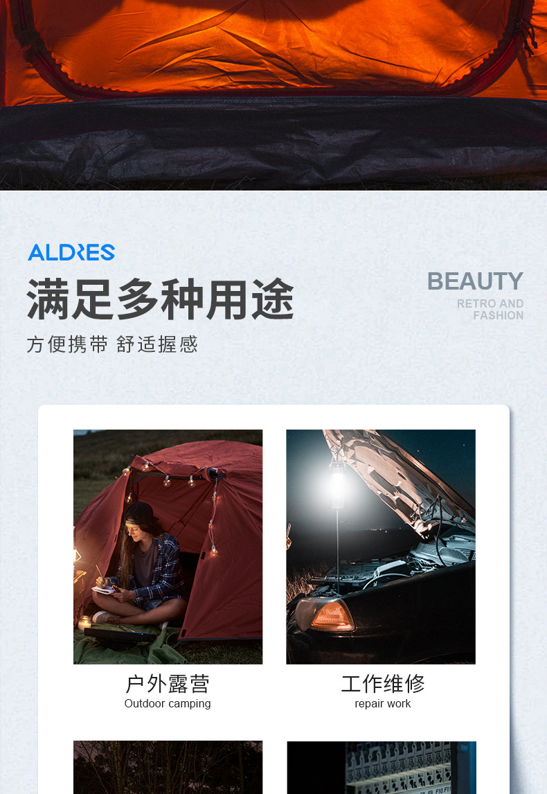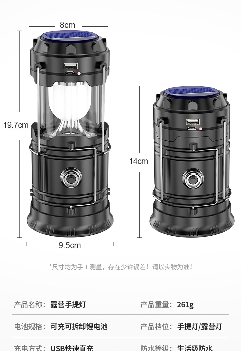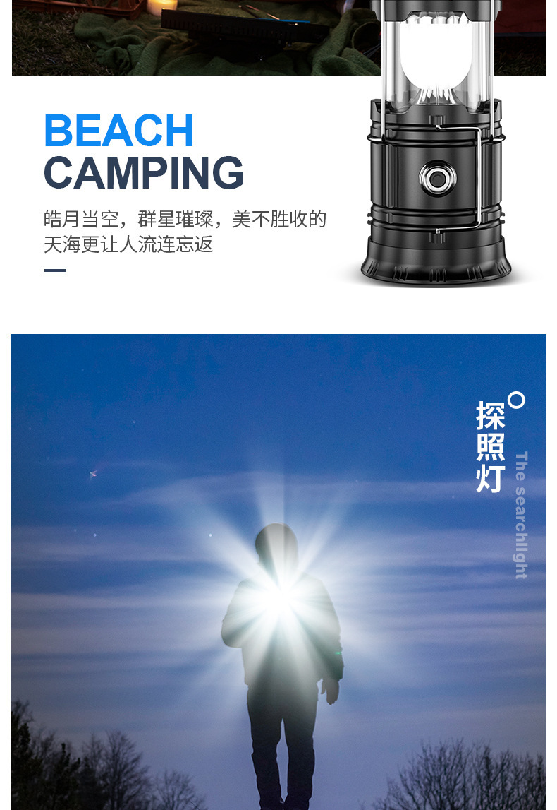 캠핑 가벼운 말 램프 다기능 스트레치 태양 충전 휴대용 캠핑 야외 텐트 비상 조명