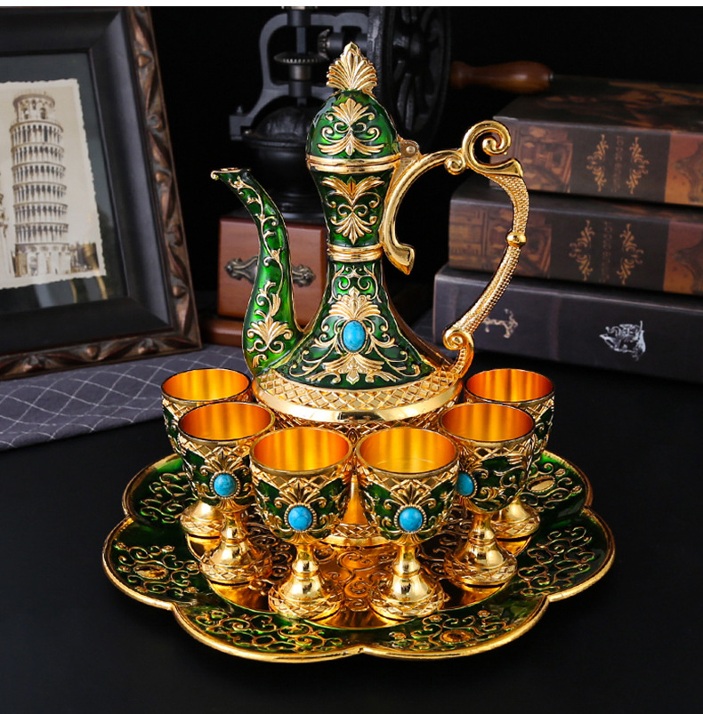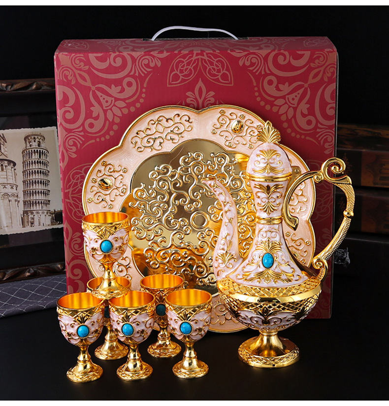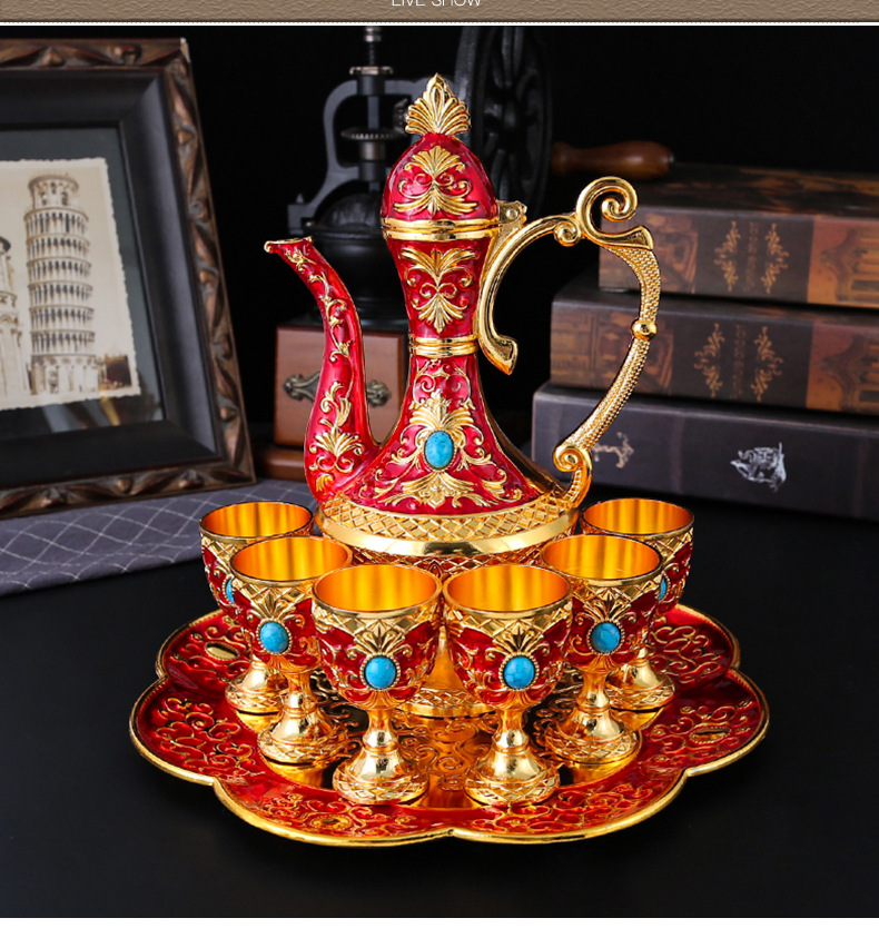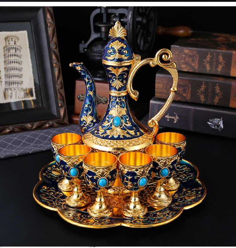 빈티지 엔트리 고급 와인 용품 세트 유럽식 궁전 스타일 와인 주전자 세트 합금 정밀 인쇄 된 와인 용품 세트스토어 가기
