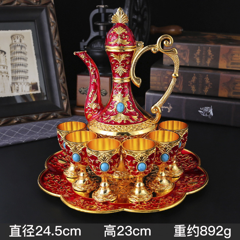 빈티지 엔트리 고급 와인 용품 세트 유럽식 궁전 스타일 와인 주전자 세트 합금 정밀 인쇄 된 와인 용품 세트