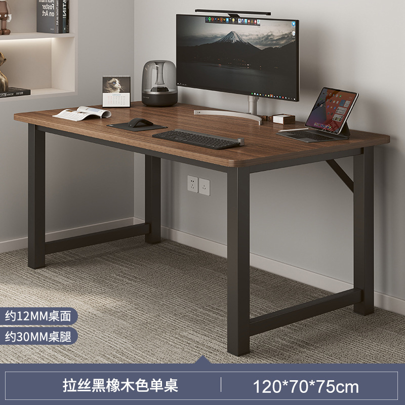 • [두꺼운 25MM 데스크탑] 브러시드 블랙 오크 컬러 싱글 테이블 120*50cm [강화 크로스바]