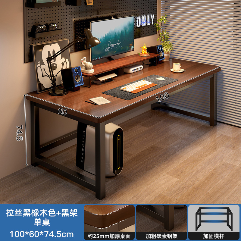 • [두꺼운 25MM 데스크탑] 브러시드 블랙 오크 컬러 싱글 테이블 100*60cm [강화 크로스바]