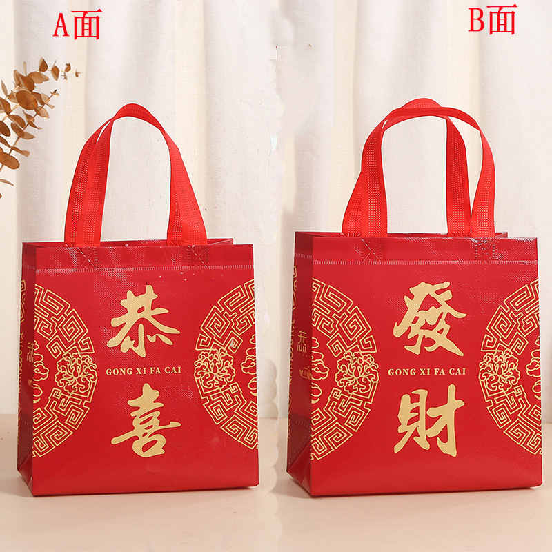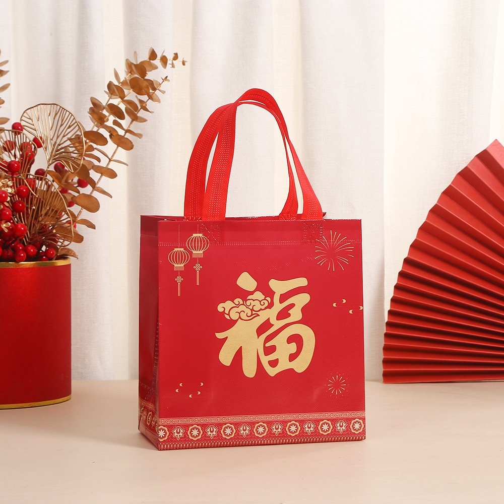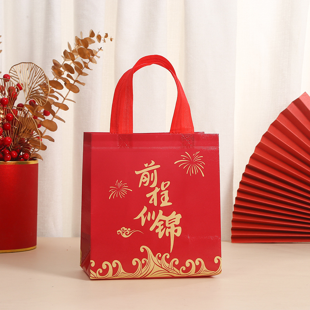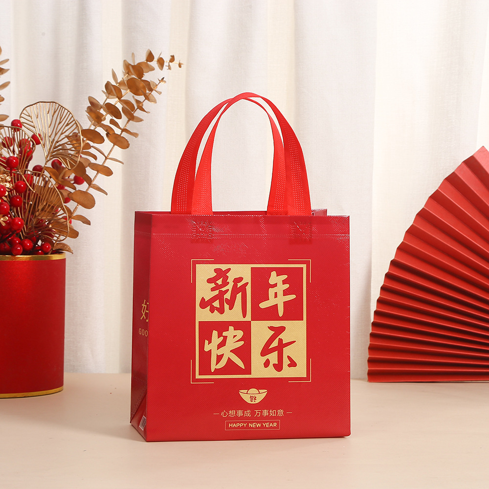 2025 년 새해 부직포 선물 포장 가방 봄 축제 텍스트 휴대용 쇼핑 가방 축제 인쇄 방수 테이크 아웃 가방