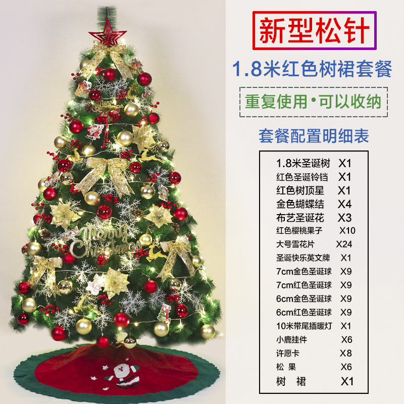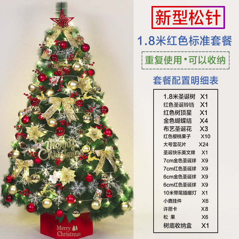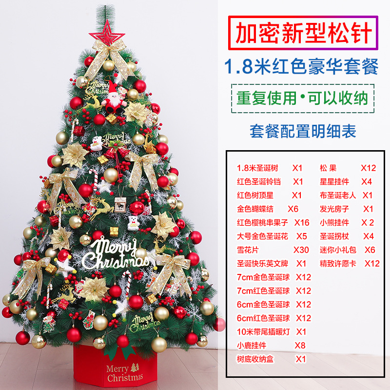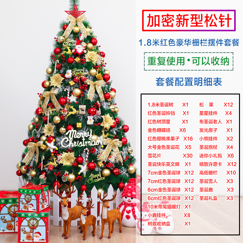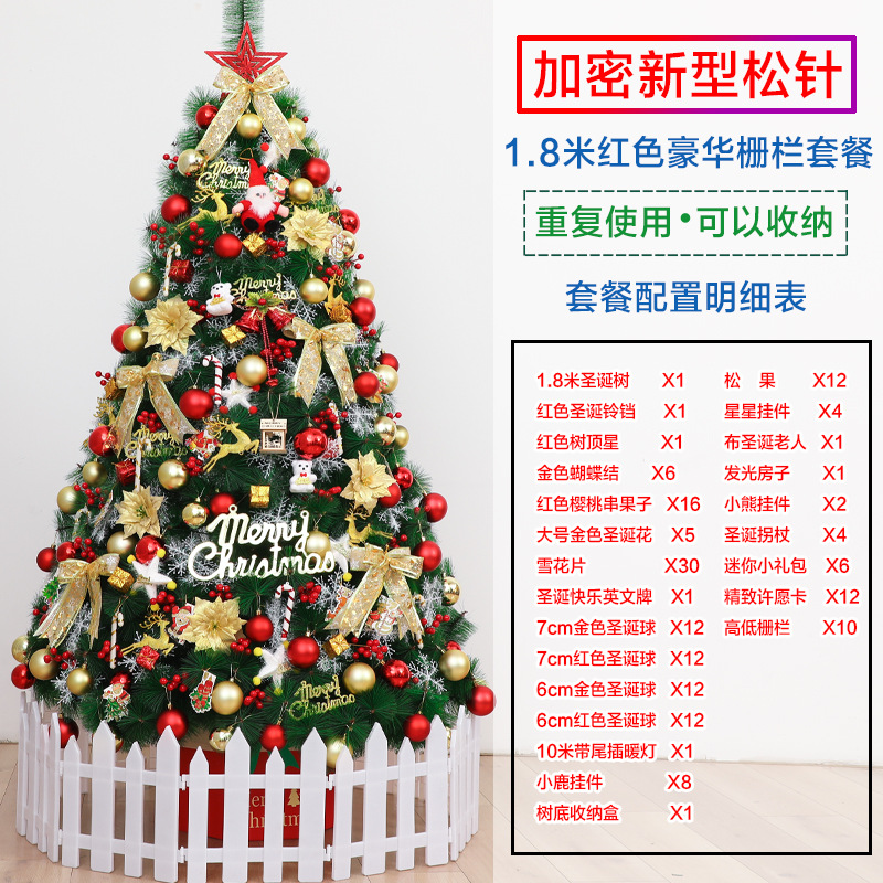 • 1.8m 레드 럭셔리 장식품 패키지 [암호화된 솔잎 보관 가능 + 램프 + 나무 상자] 추가 액세서리 + 울타리 + 장식품