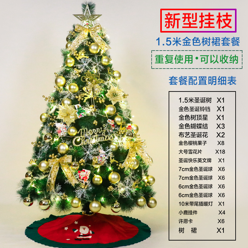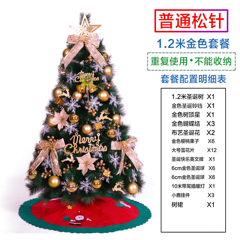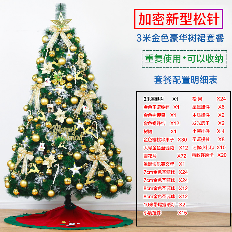 • 3m 골드 럭셔리 패키지 [나무 묶인 솔잎 + 램프 + 트리 스커트] 추가 액세서리