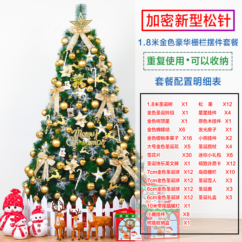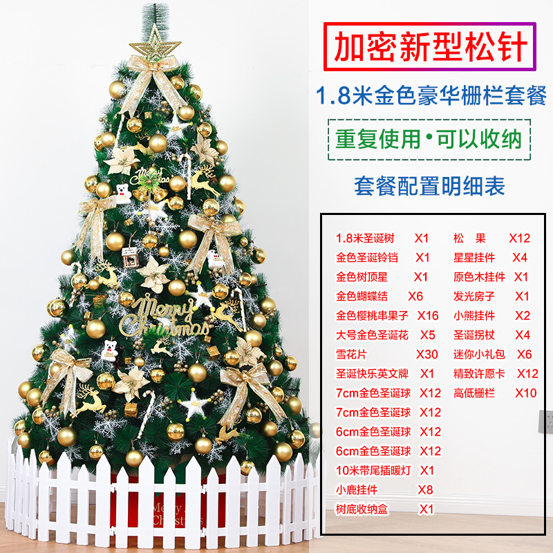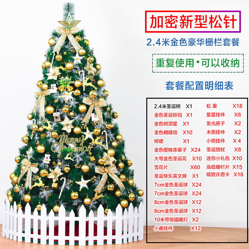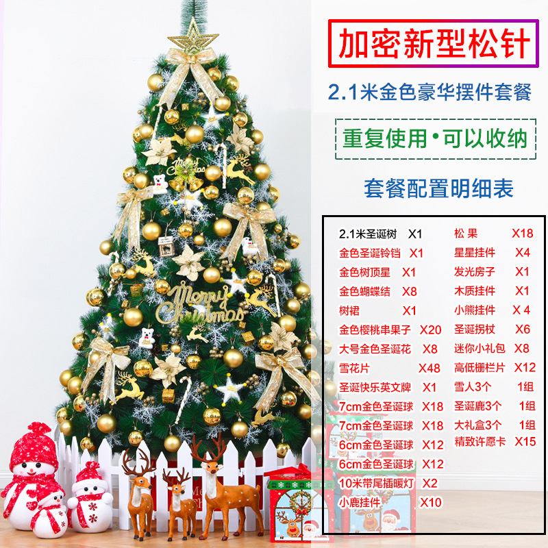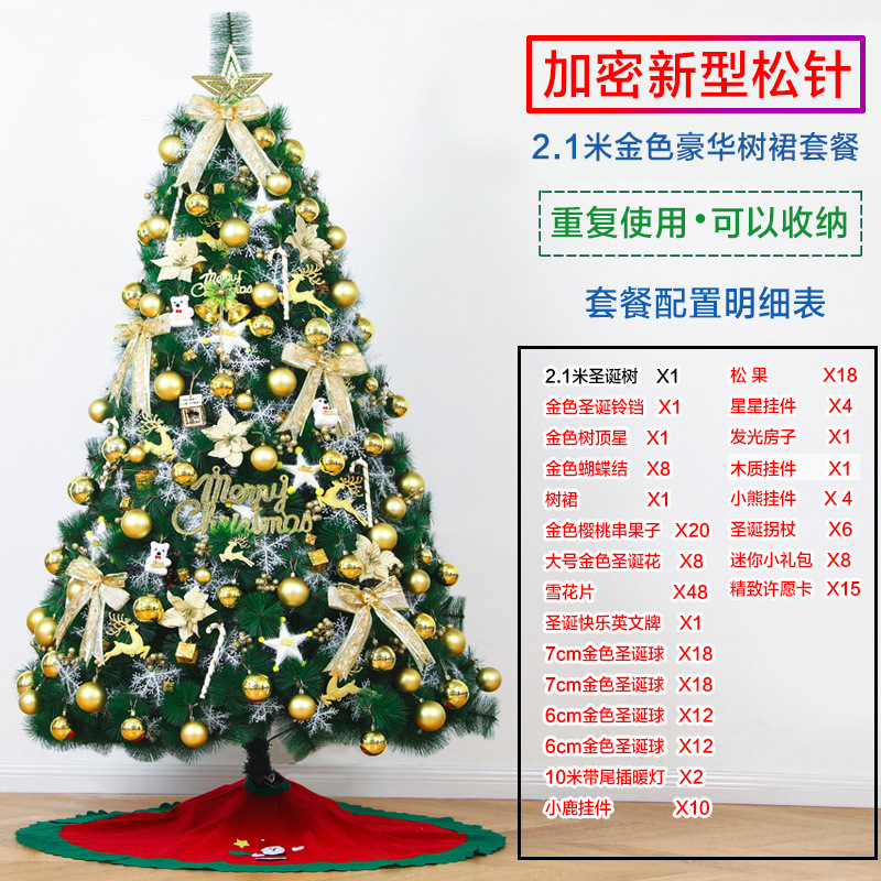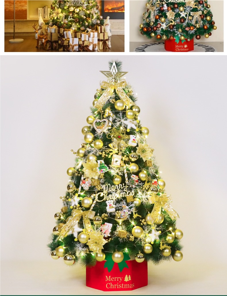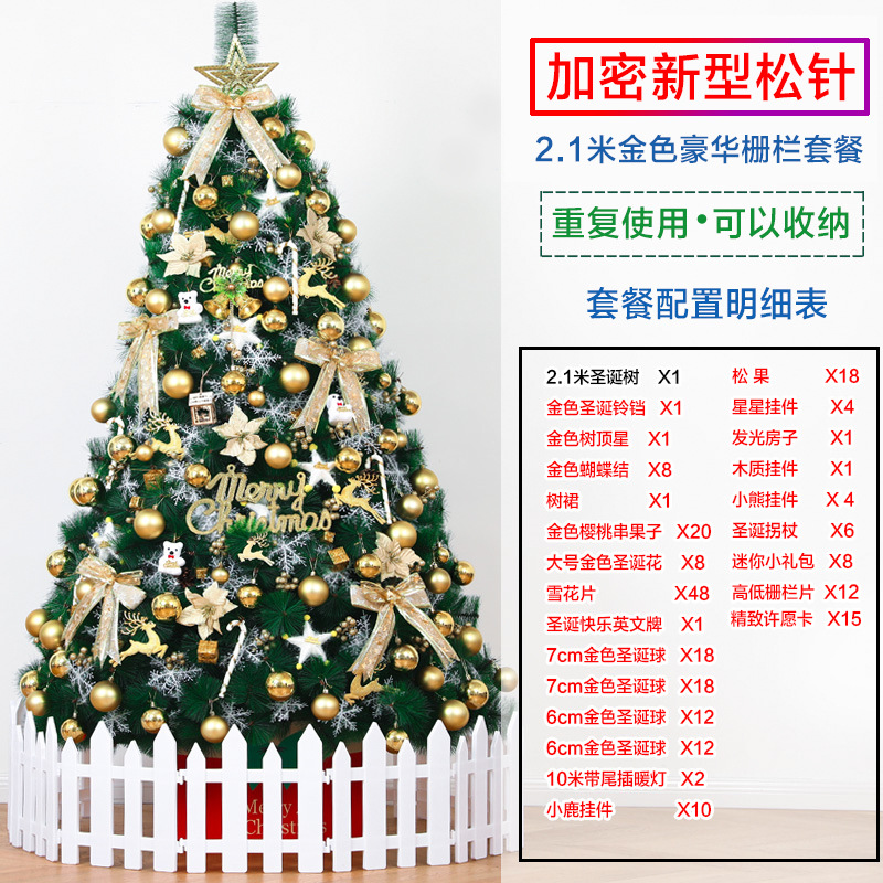 • 2.1m 골드 럭셔리 장식품 패키지 [솔잎 수납 가능 + 램프 + 트리 스커트] 액세서리 + 울타리 + 장식품 추가