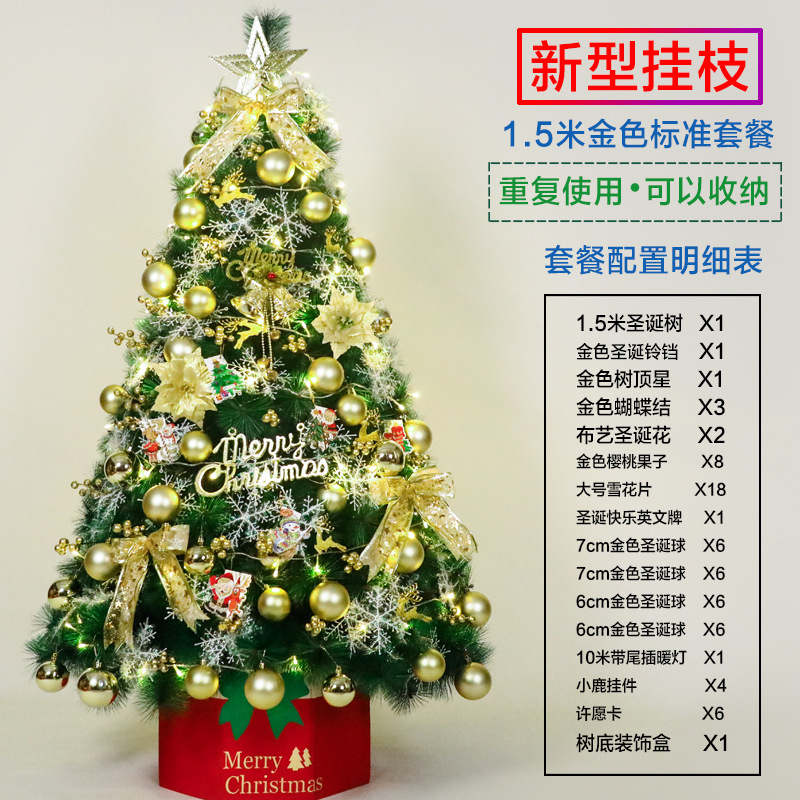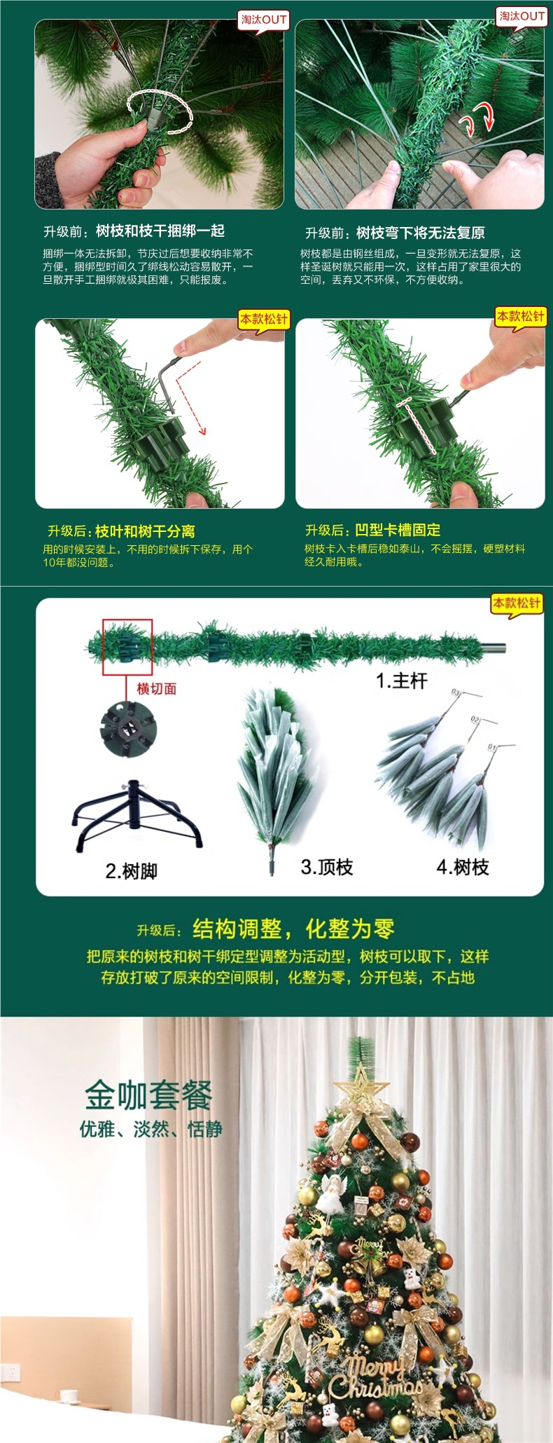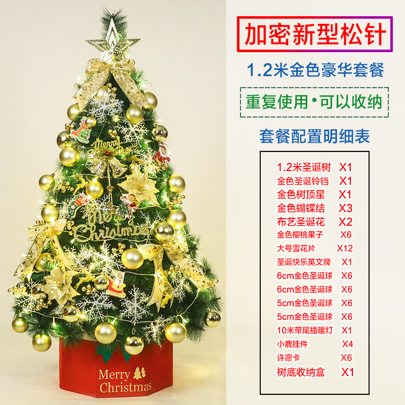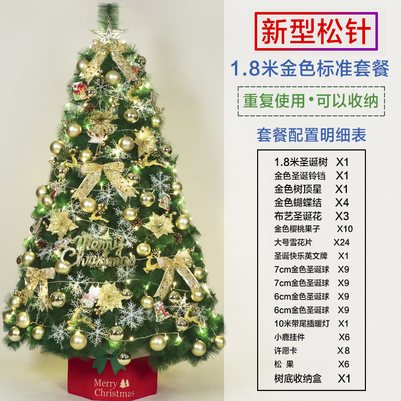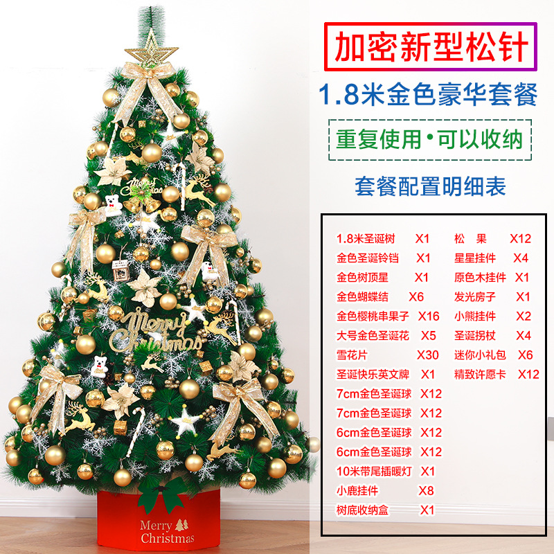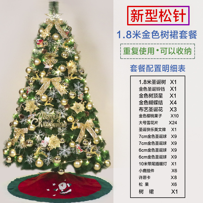 • 2.1m 골드 럭셔리 장식품 패키지 [솔잎 수납 가능 + 램프 + 트리 스커트] 액세서리 + 울타리 + 장식품 추가