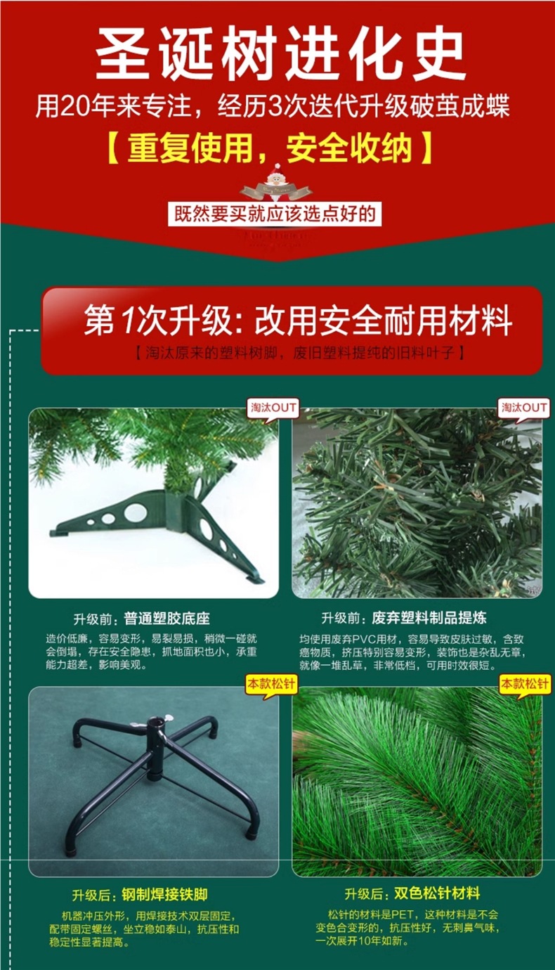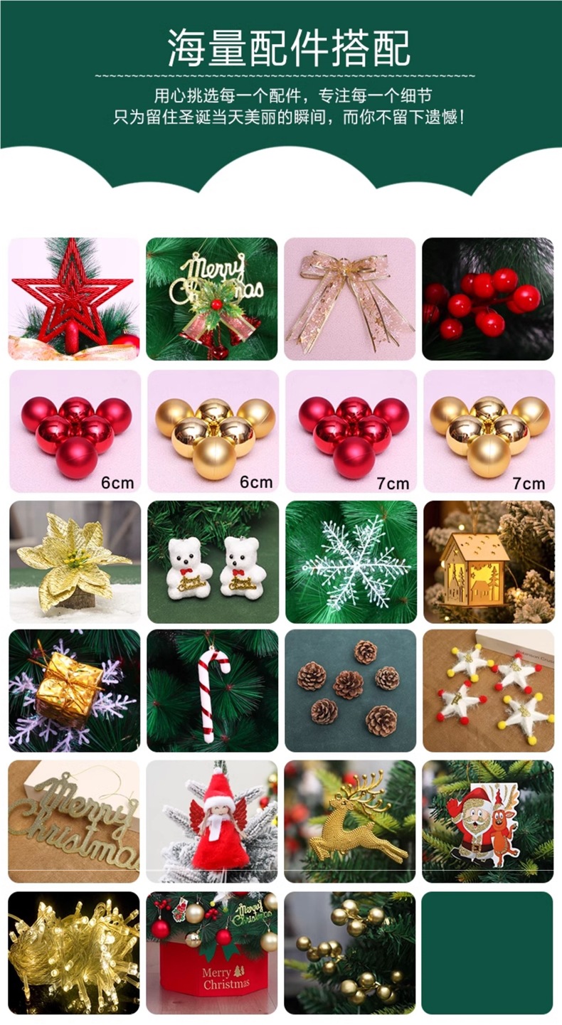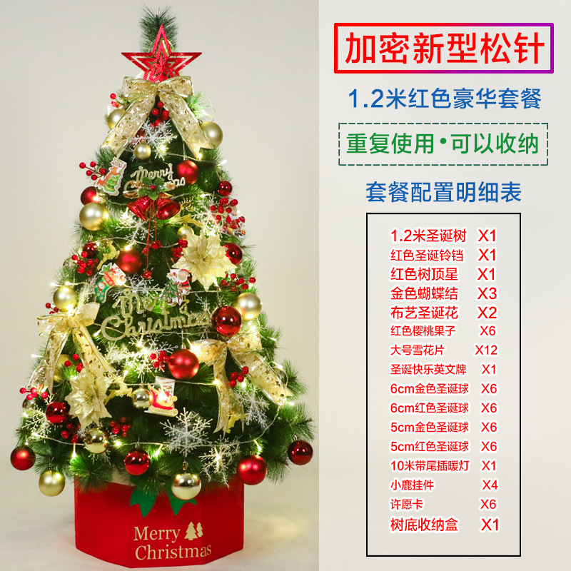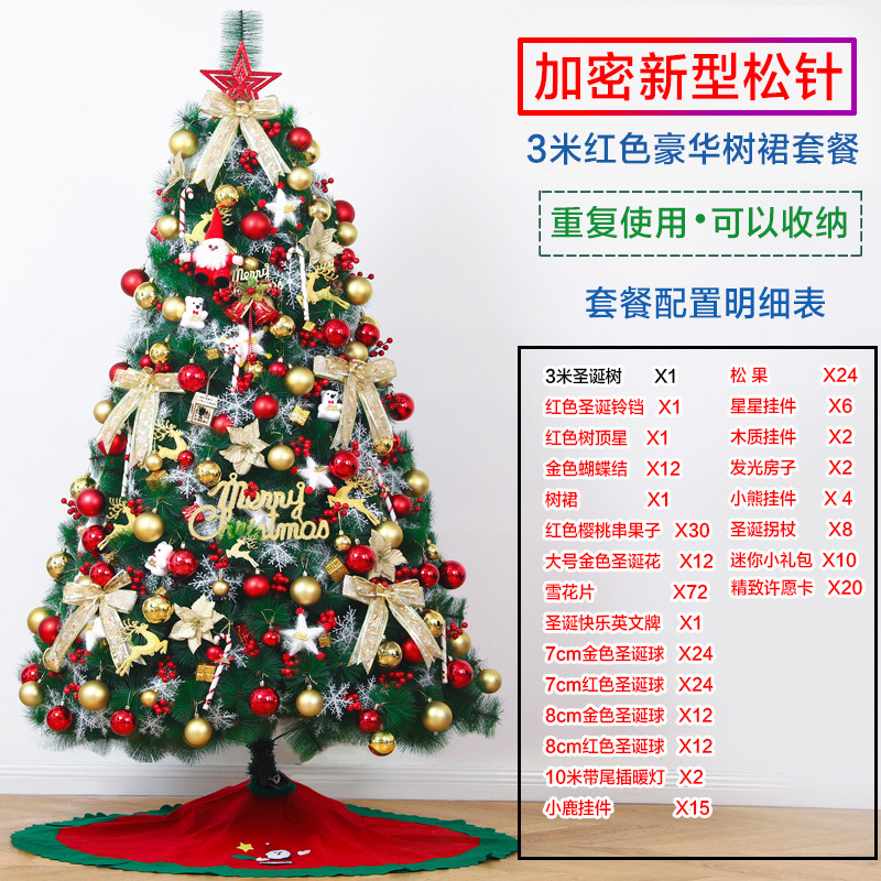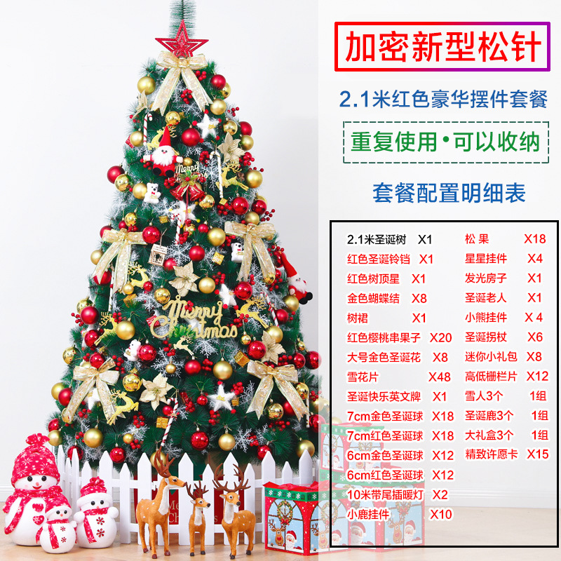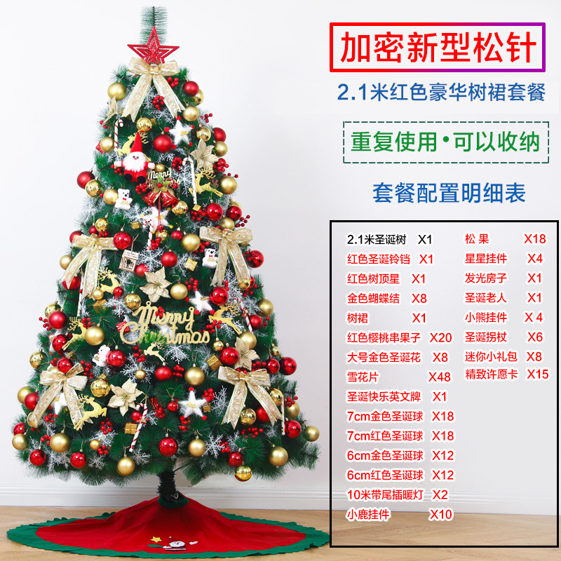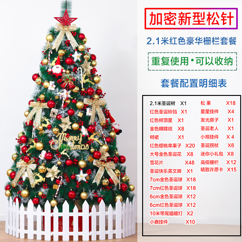 • 2.1m 레드 럭셔리 장식품 패키지 [솔잎 수납 가능 + 램프 + 트리 스커트] 액세서리 + 울타리 + 장식품 추가