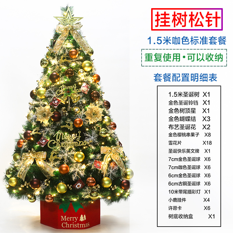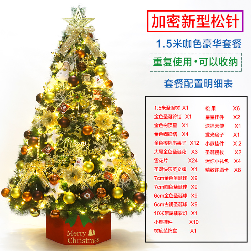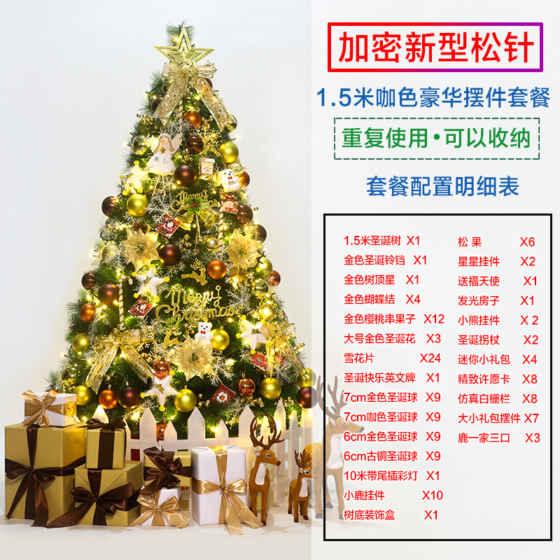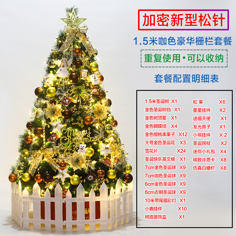 • 1.5m 커피 컬러 럭셔리 장식품 패키지 [솔잎 수납 가능 + 램프 + 나무 상자] 추가 액세서리 + 울타리 + 장식품