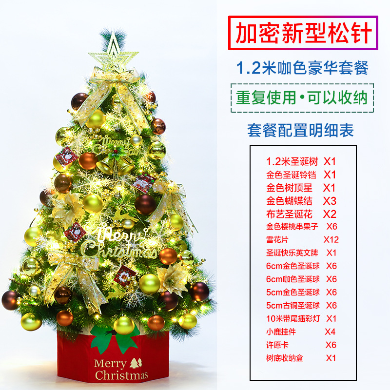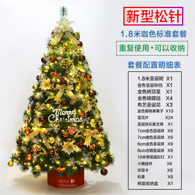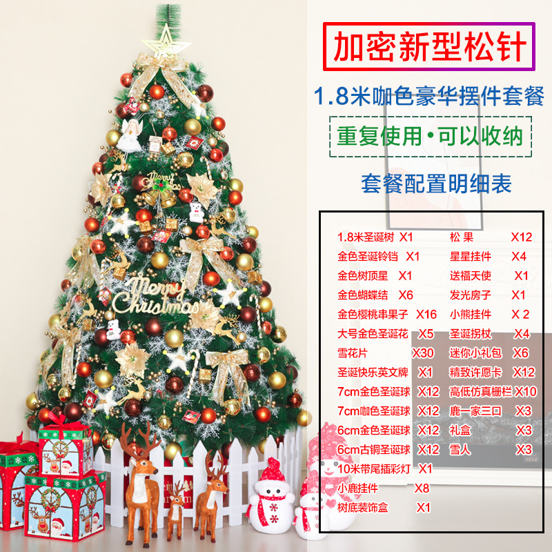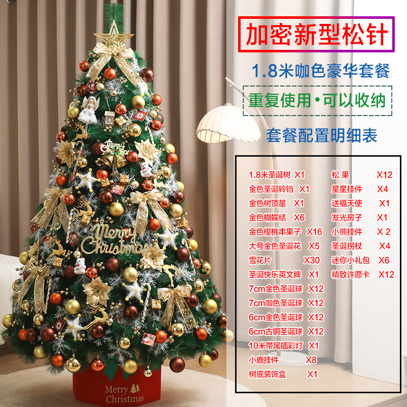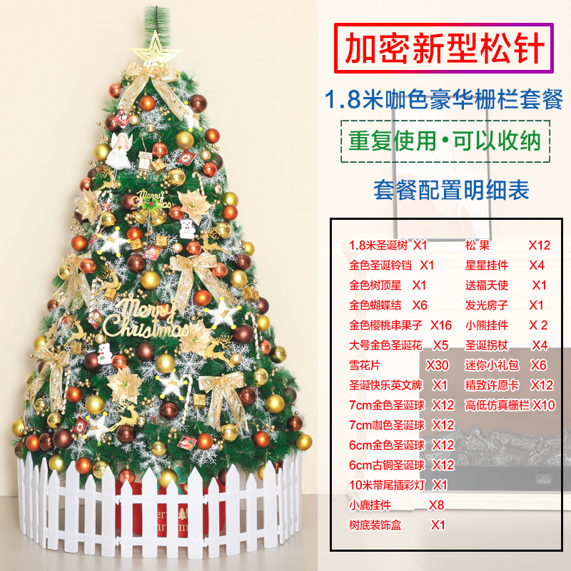 • 1.8m 커피 컬러 럭셔리 장식품 패키지 [솔잎 수납 가능 + 램프 + 나무 상자] 추가 액세서리 + 울타리 + 장식품