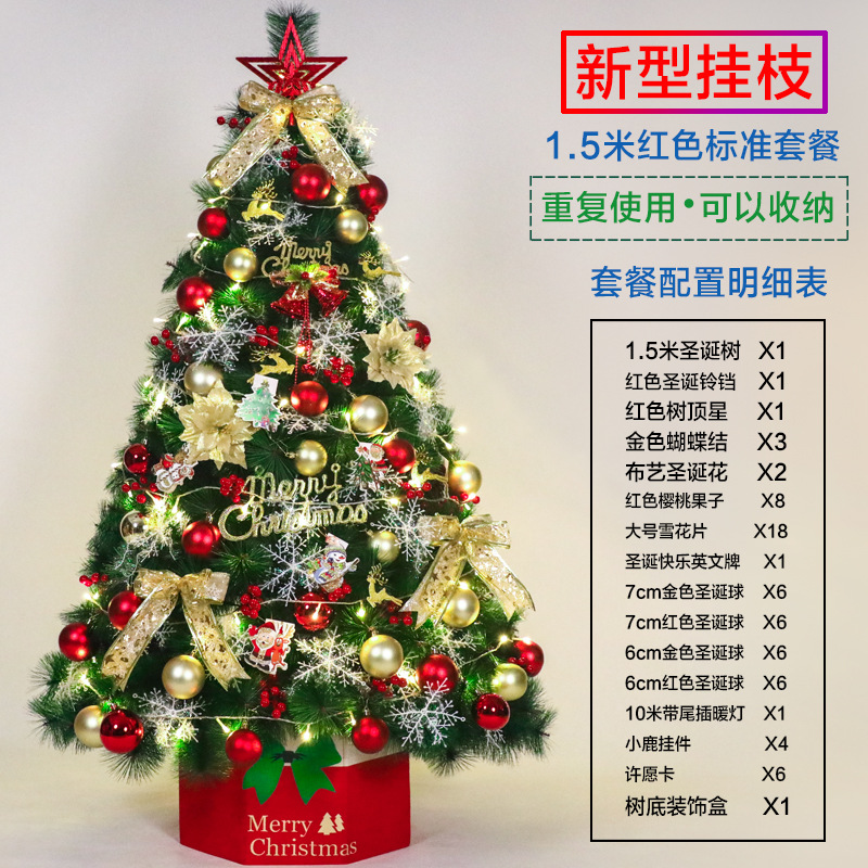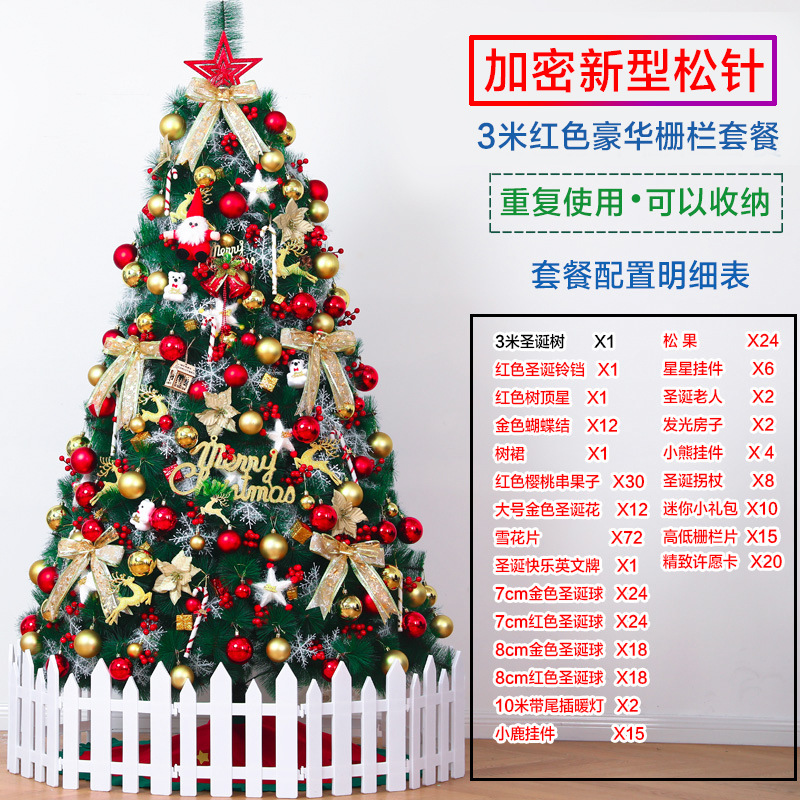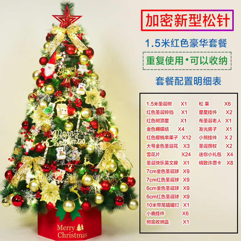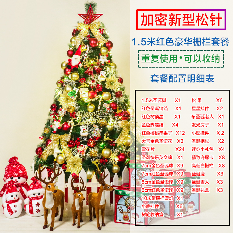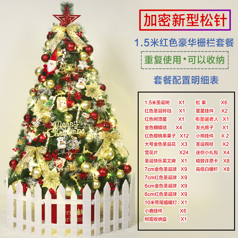 • 1.5m 레드 럭셔리 장식품 패키지 [암호화된 솔잎 보관 가능 + 램프 + 나무 상자] 추가 액세서리 + 울타리 + 장식품