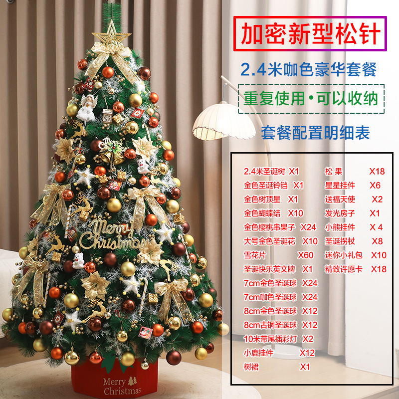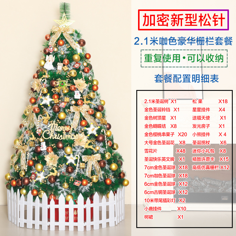 • 2.1m 커피 컬러 럭셔리 장식품 패키지 [솔잎 수납 가능 + 램프 + 나무 스커트] 추가 액세서리 + 울타리 + 장식품