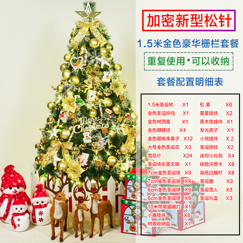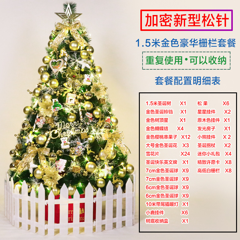 • 1.5m 골드 럭셔리 장식품 패키지 [암호화된 솔잎 보관 가능 + 램프 + 나무 상자] 추가 액세서리 + 울타리 + 장식품