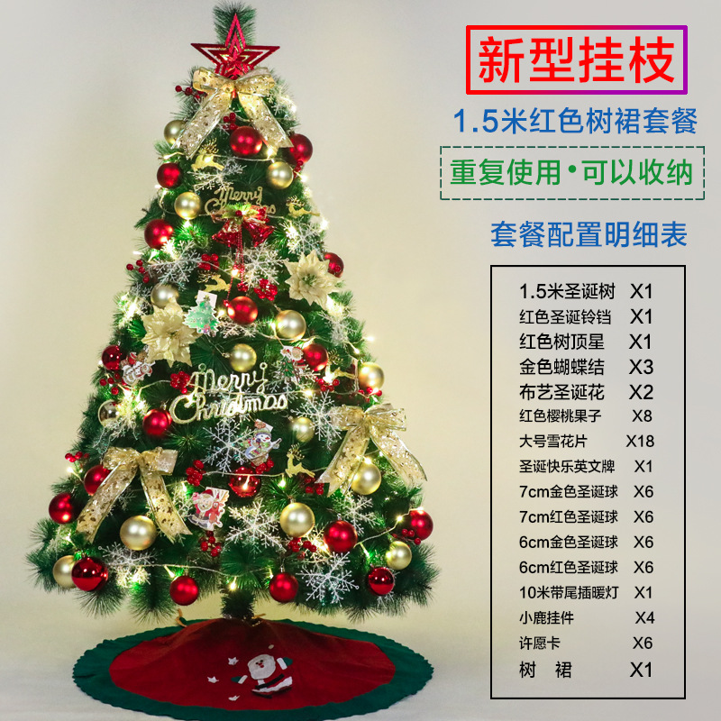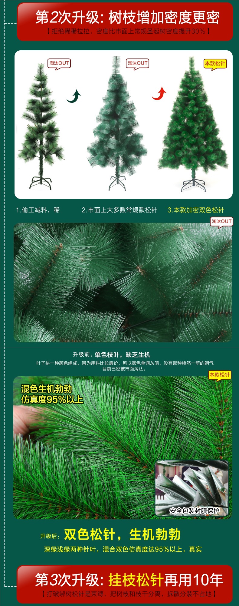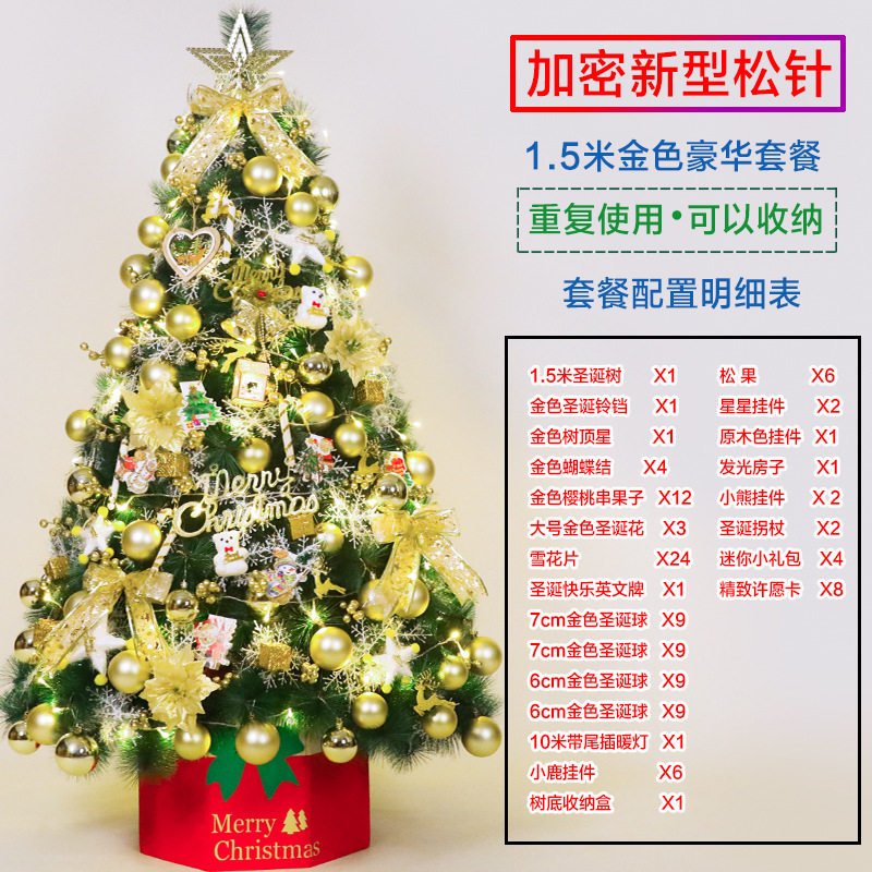 2024 새로운 소나무 바늘 크리스마스 트리 홈 1.5 미터 패키지 대형 장식품 Diy 암호화 빛나는 크리스마스 장식