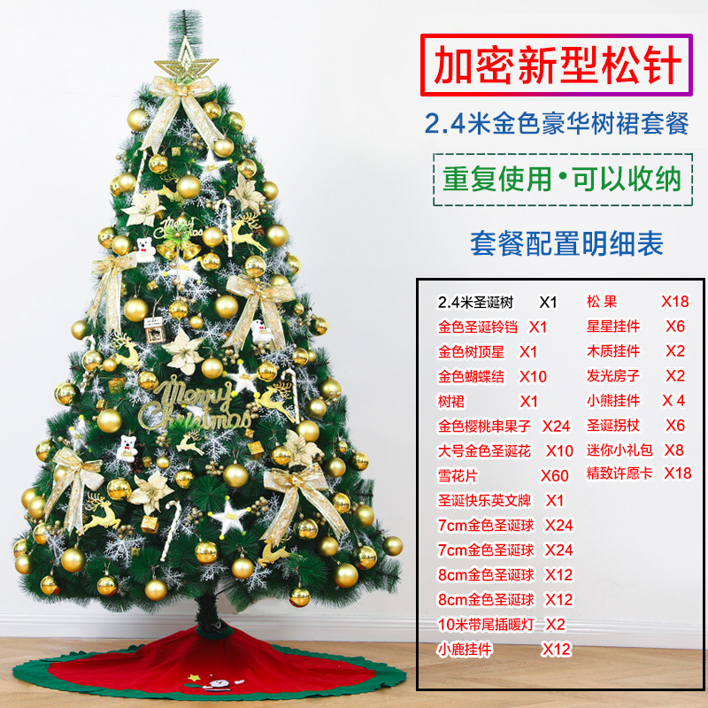 • 2.4m 골드 럭셔리 패키지 [나무 묶인 솔잎 + 램프 + 트리 스커트] 추가 액세서리