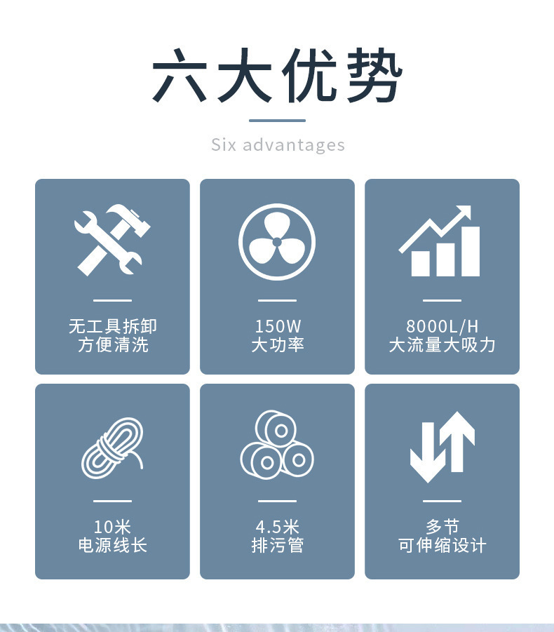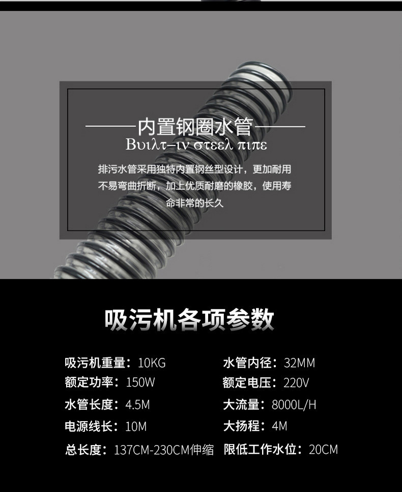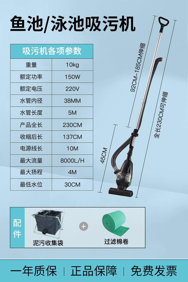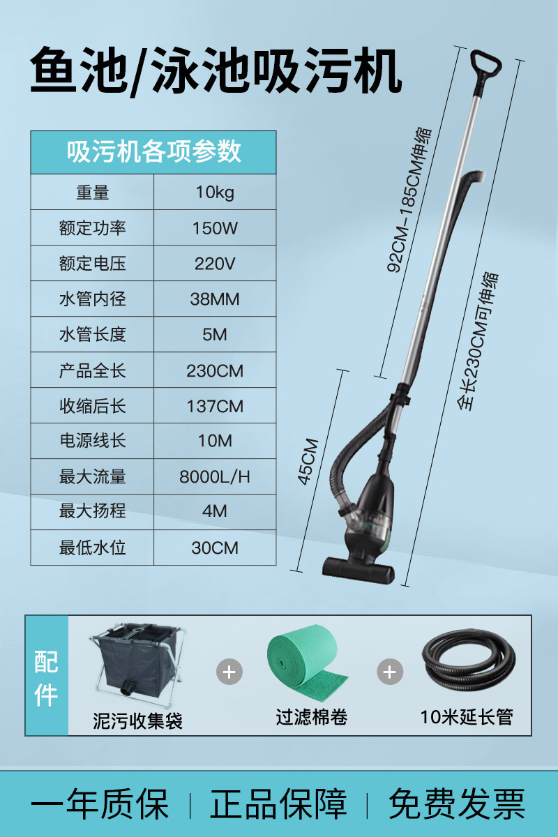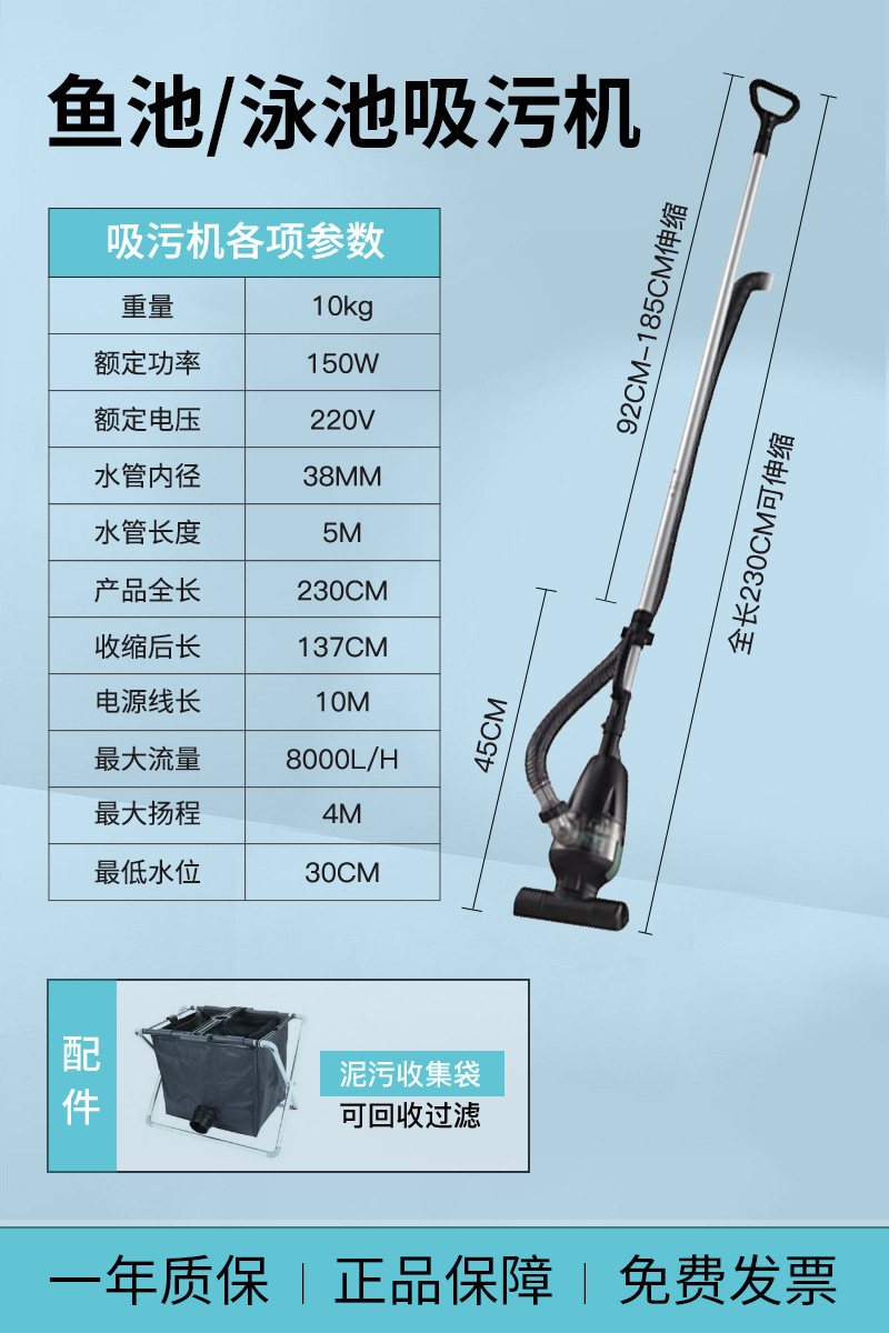 • 【강력한 흡입력 저소음 5m 튜브】수영장/연못 세탁기