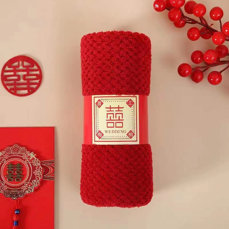 웨딩 동반자 선물 빨간 수건 도매 약혼 보름달 반환 선물 수건 산호 양털 수건