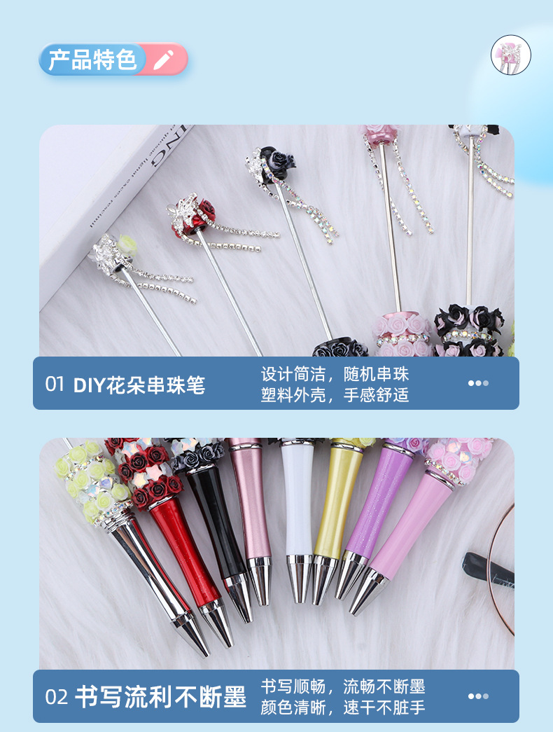 창조적 인 DIY 장미 꽃잎 구슬 펜 절묘한 수제 다이아몬드 구슬 귀여운 펜 소녀의 심장 블라인드 박스 선물 펜