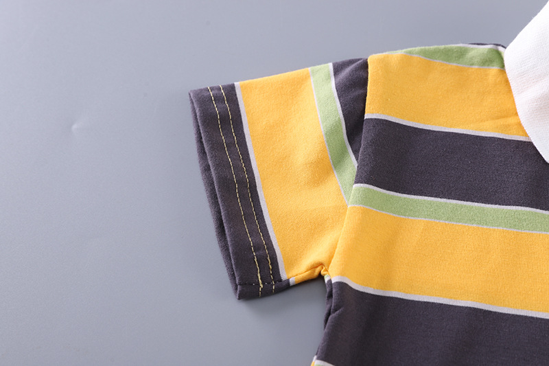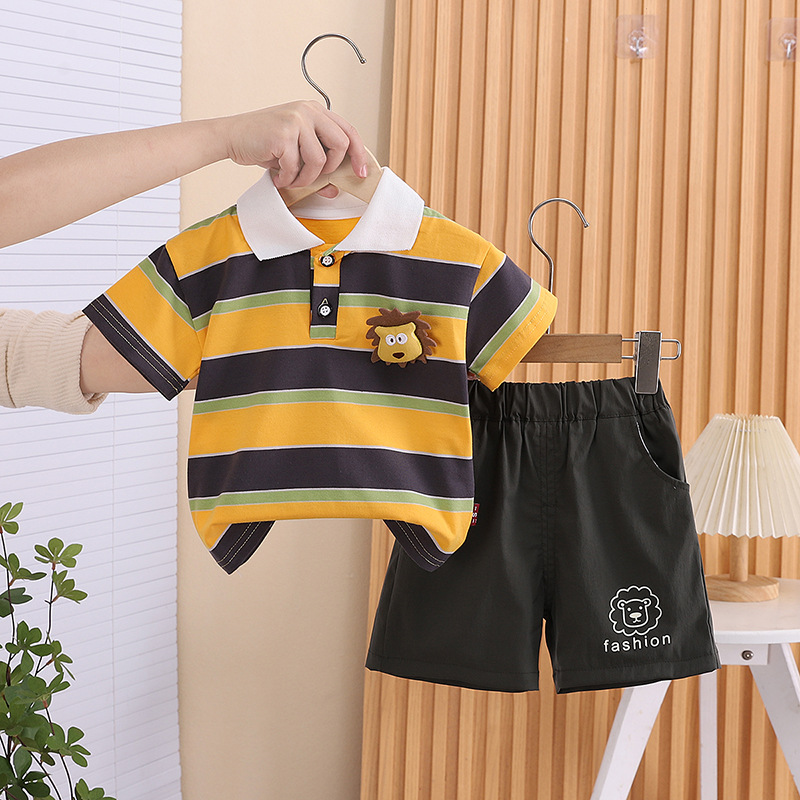남자들의 여름 반팔 세트 여름 새로운 어린이 통기성 얇은 줄무늬 사자 머리 투피스 유행 세트