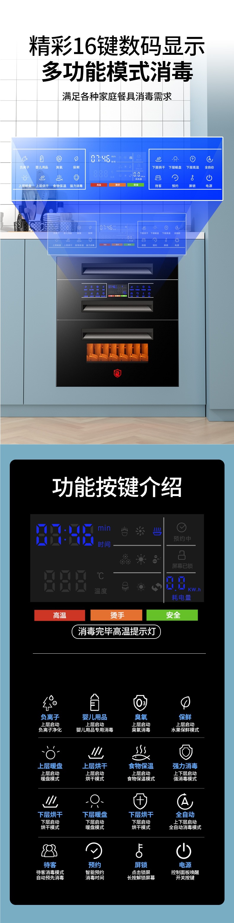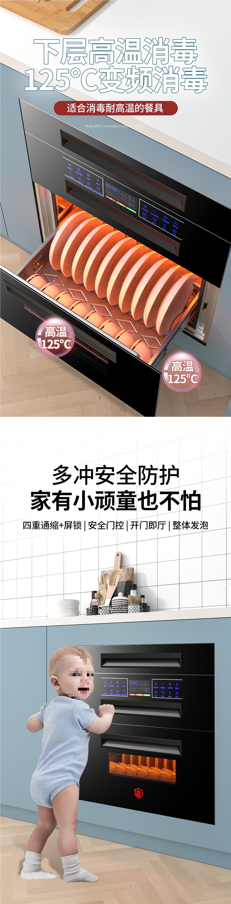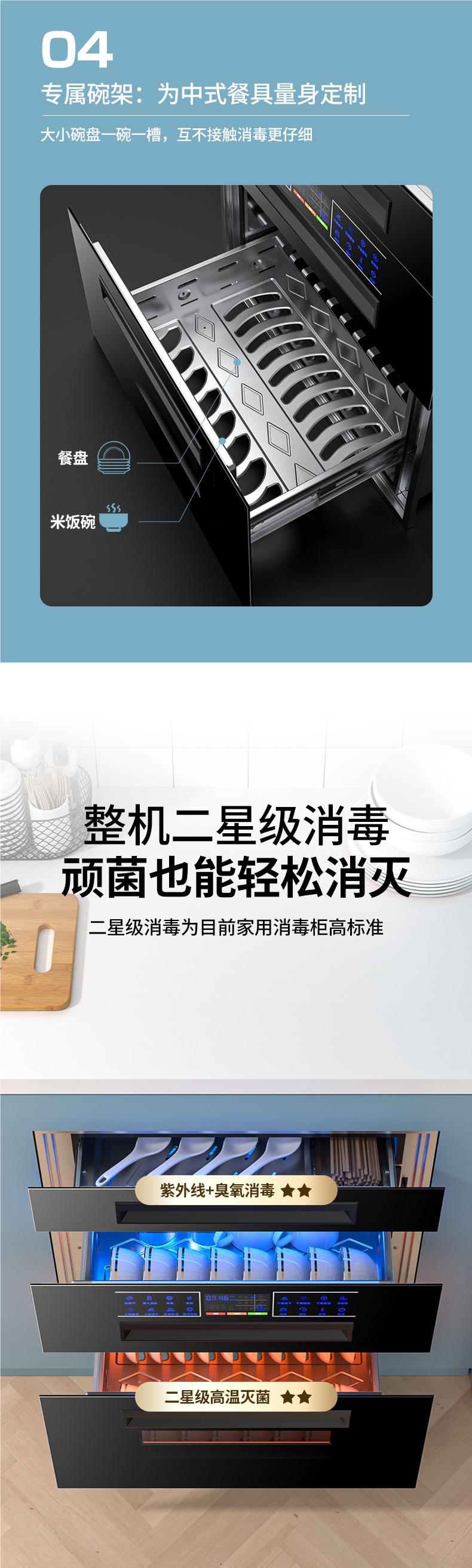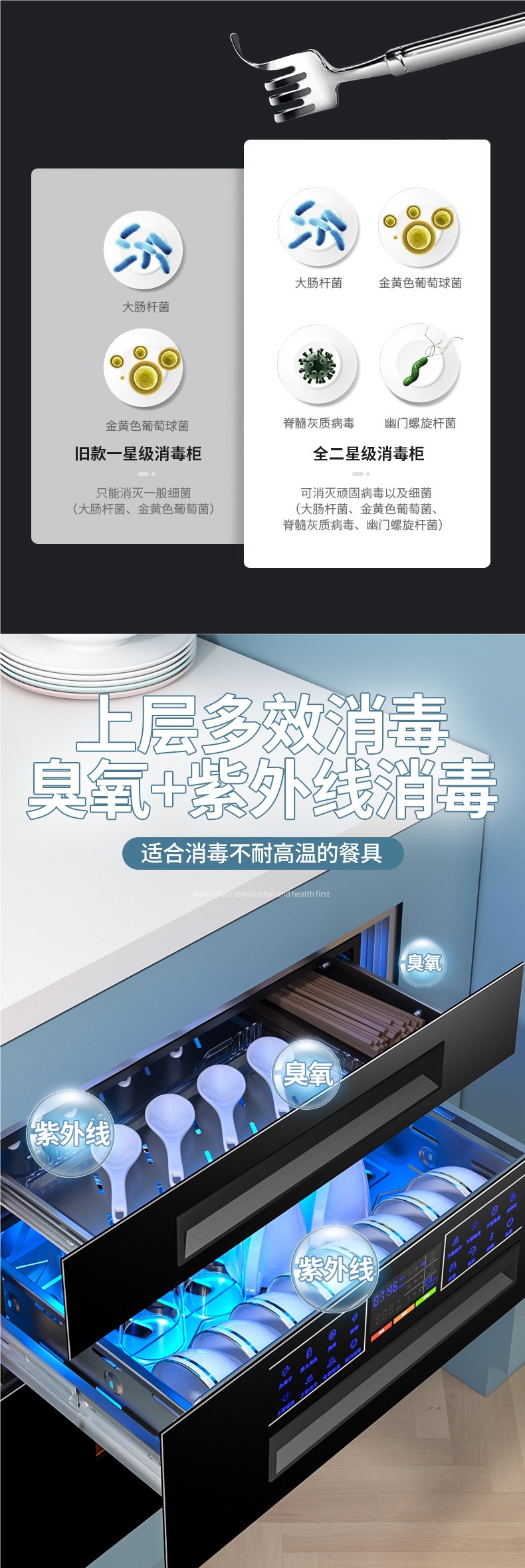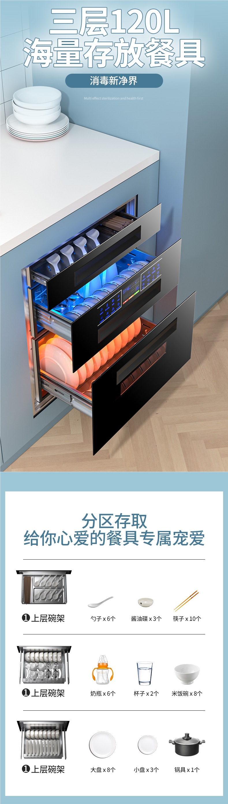 좋은 아내 소독 캐비닛 가정용 내장 작은 부엌 3 층 120L 자외선 고온 그릇 젓가락 소독 찬장