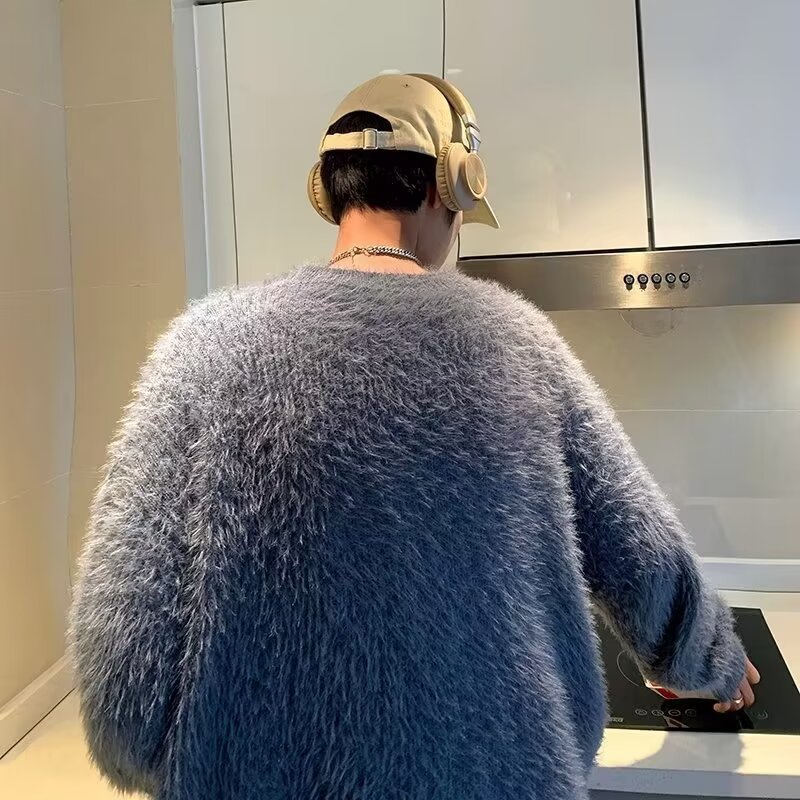 분위기 감각 모방 밍크 스웨터 남성 가을과 겨울 두꺼운 부드러운 게으른 바람 느슨한 둥근 목 니트 스웨터 도매