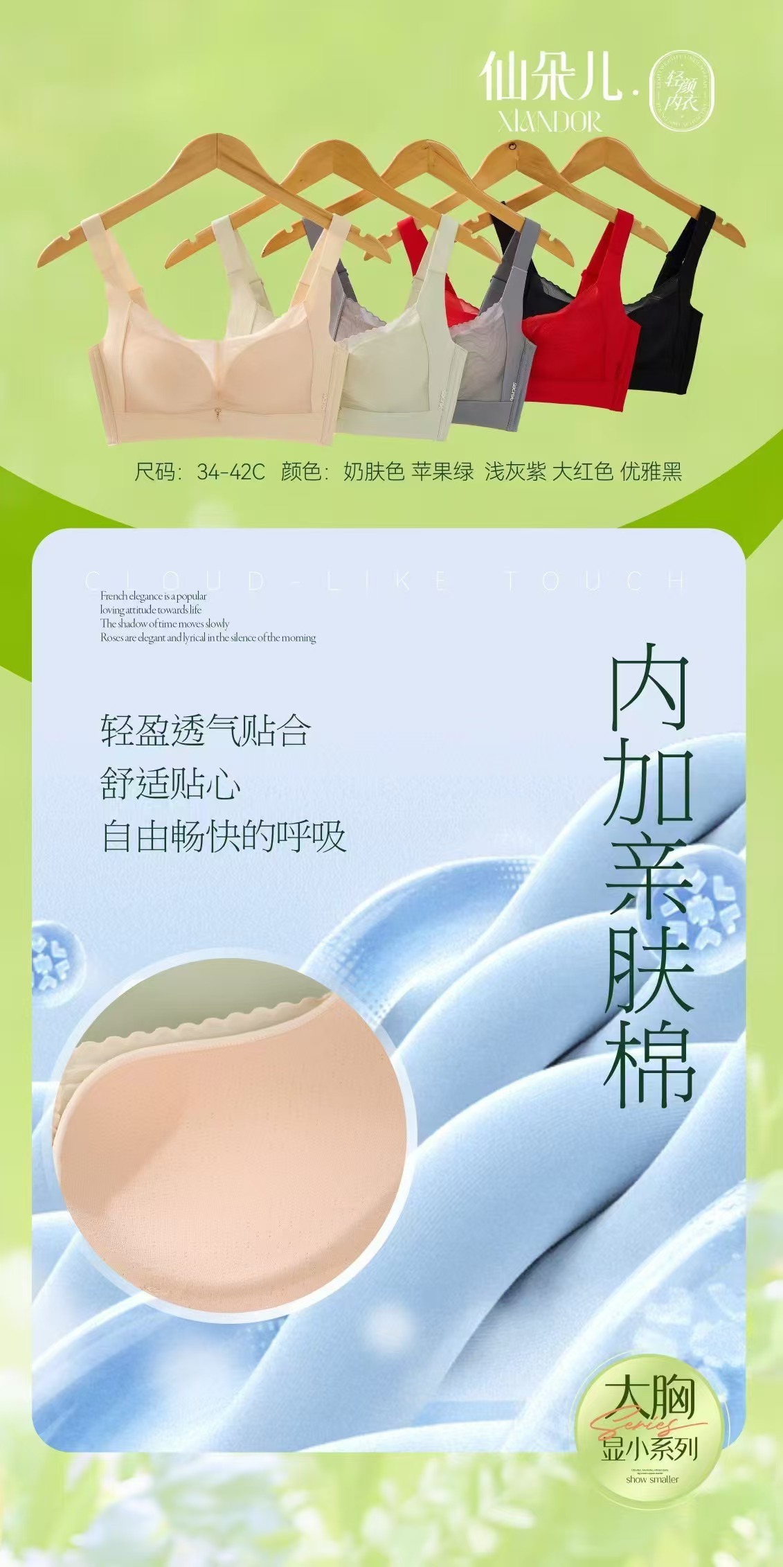 Xian Duo 8097 새로운 대형 가슴 작은 시리즈 작은 가슴 푸시 업 통기성 비 림 속옷 트레이스 브라