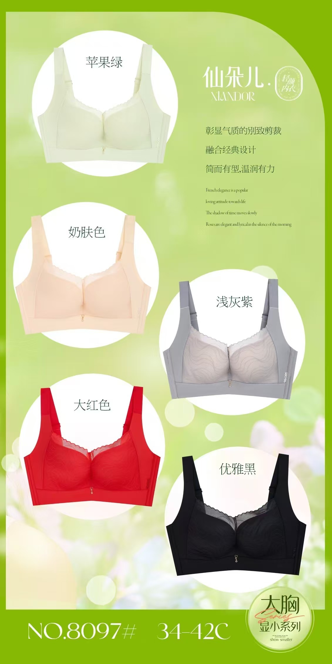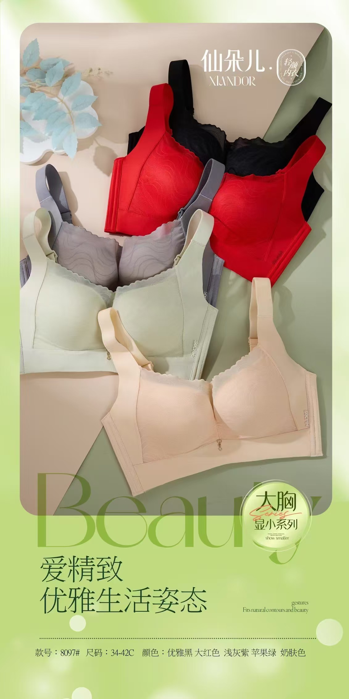 Xian Duo 8097 새로운 대형 가슴 작은 시리즈 작은 가슴 푸시 업 통기성 비 림 속옷 트레이스 브라스토어 가기