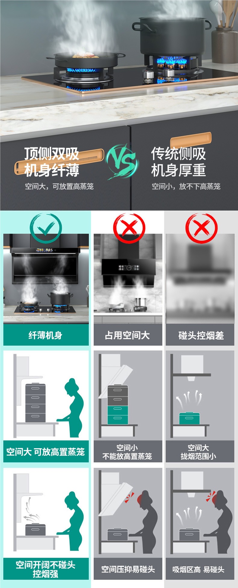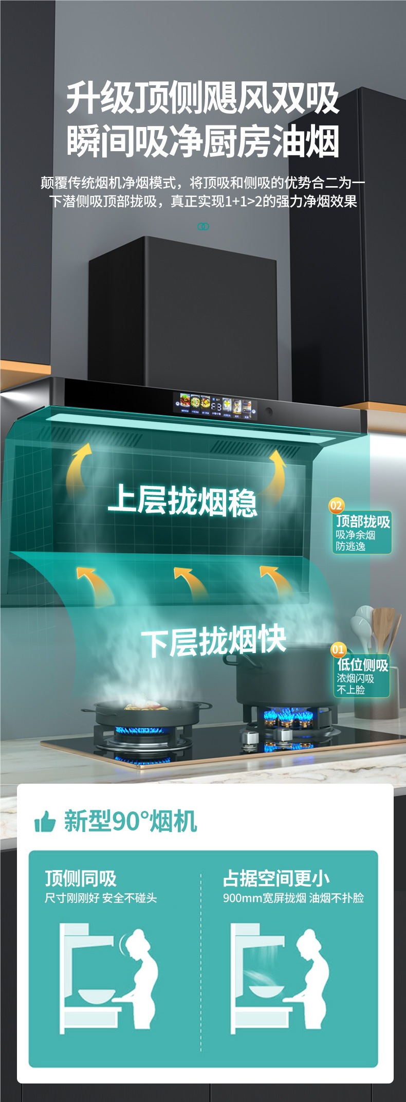 좋은 아내 큰 흡입 범위 후드 가정용 주방 작은 새로운 비 해체 및 세척 탑 사이드 더블 레인지 후드