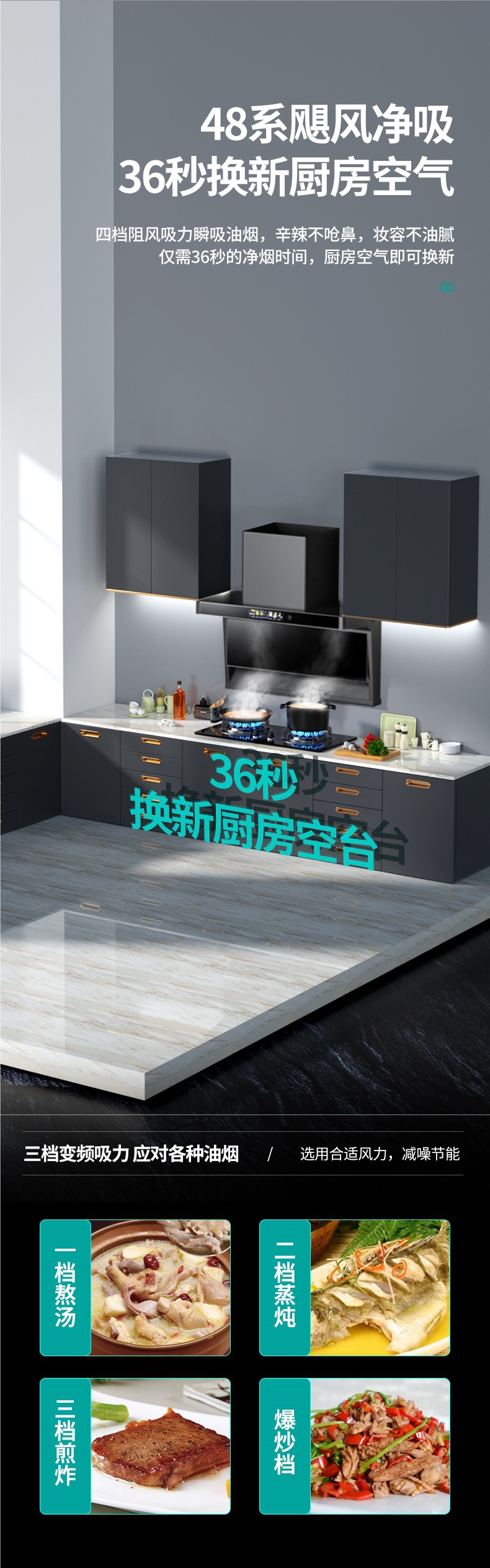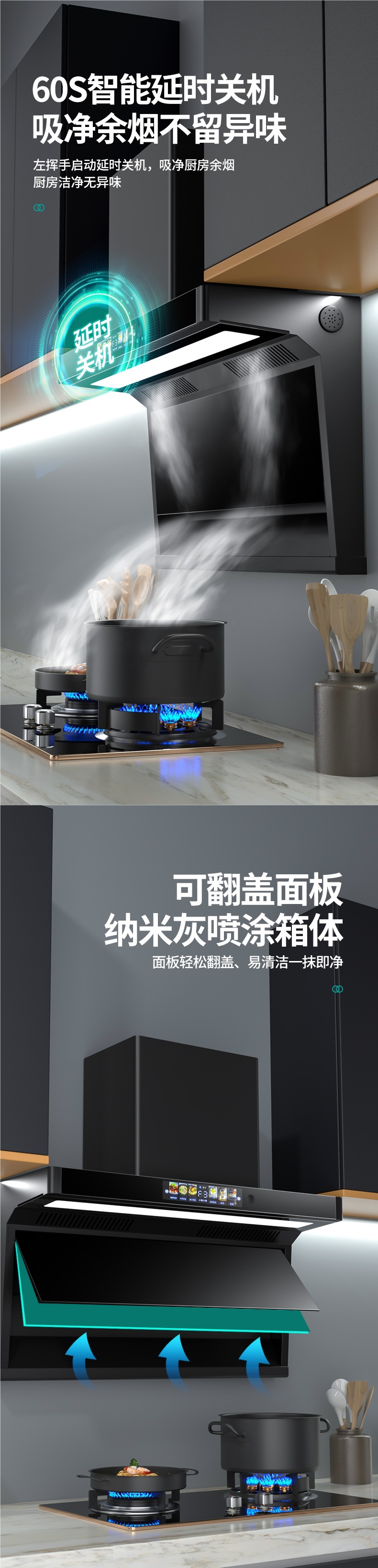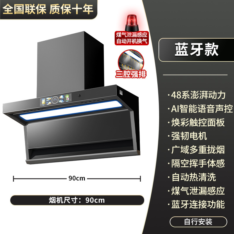 • 90cm 긴 램프 오일 연기 분리 Xiaozhi 모델 48 시리즈 - 가변 주파수 모터 - AI 음성 제어 - 공기 누출 - 방문 설치