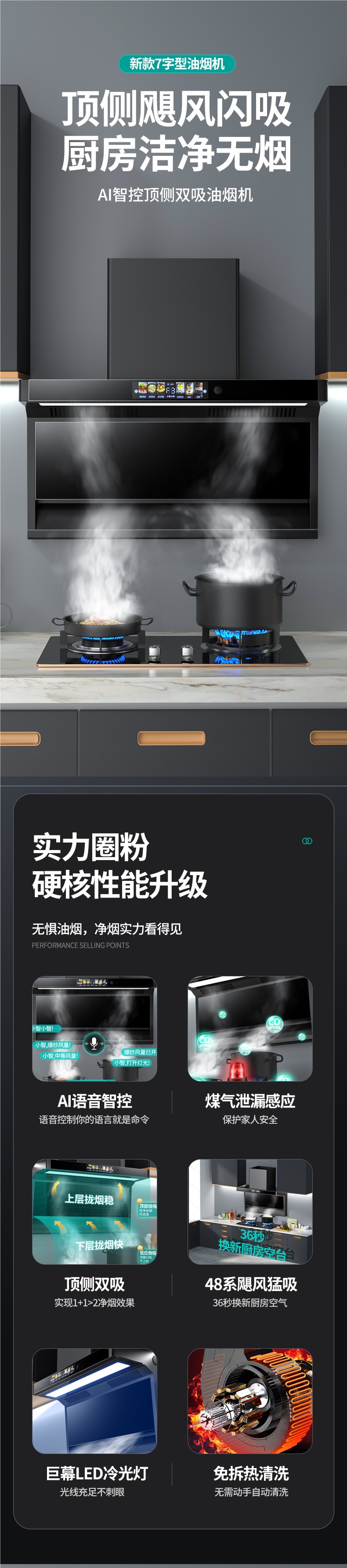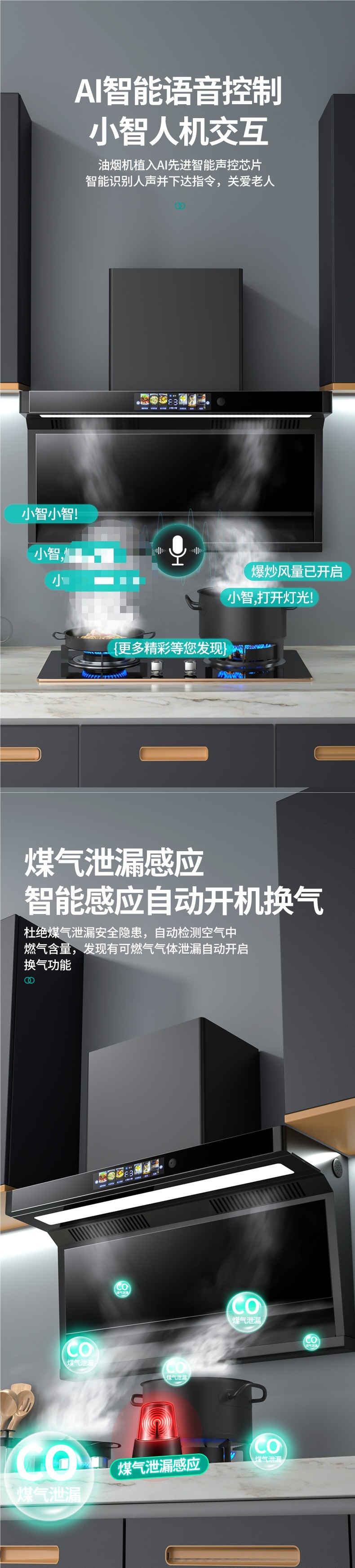• 90cm 긴 램프 오일 연기 분리 Xiaozhi 모델 48 시리즈 - 가변 주파수 모터 - AI 음성 제어 - 공기 누출 - 자체 설치