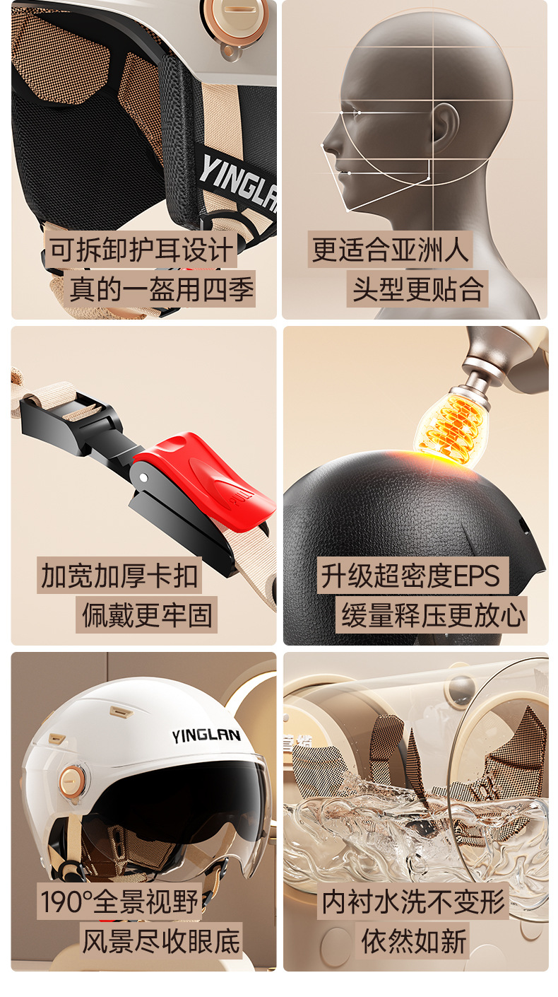 남성용 전기차 헬멧 3C 인증 사계절용 자외선 차단 경량 이중 미러 전기 오토바이 안전모 여성용스토어 가기