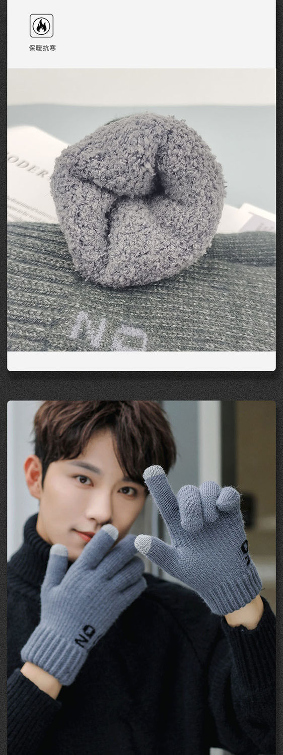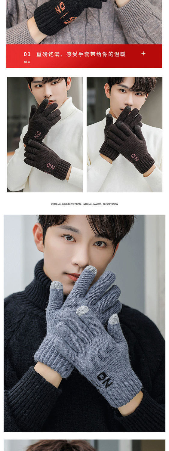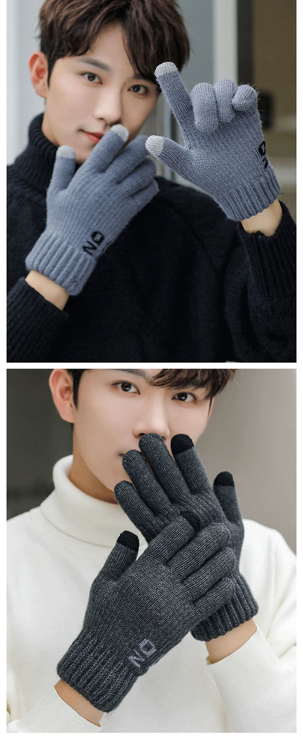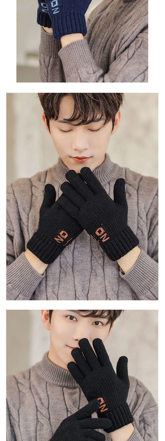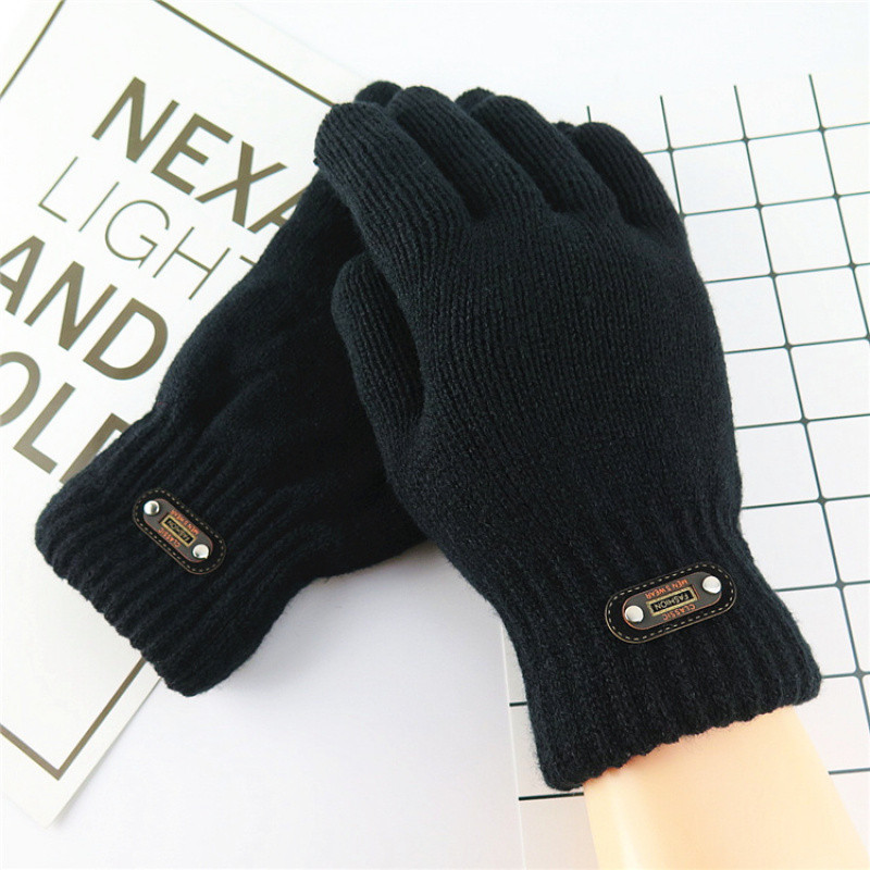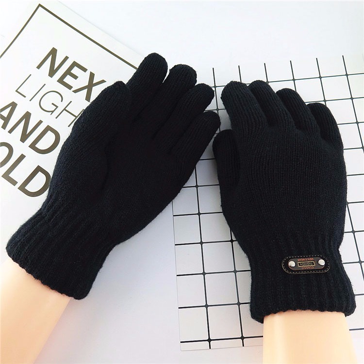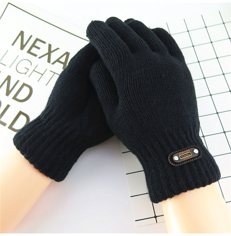 한국 스타일 더블 두꺼운 기모 순수 블랙 남성 장갑 겨울 라벨링 니트 울 올 블랙 따뜻한 남성스토어 가기