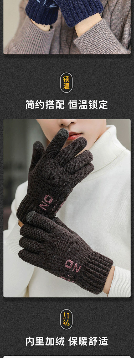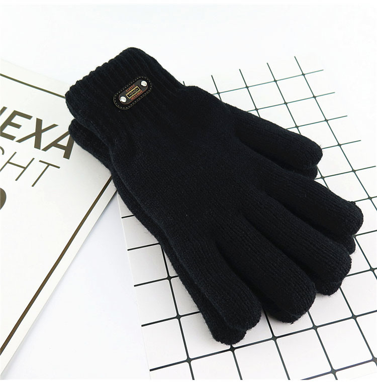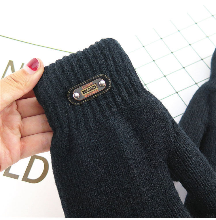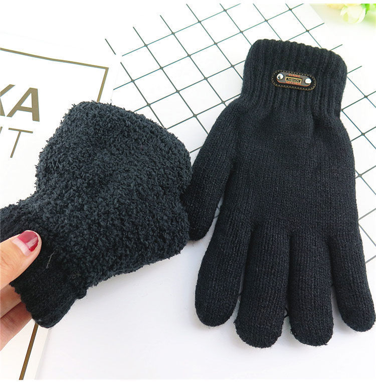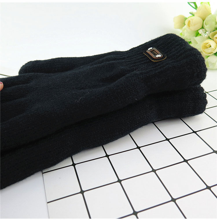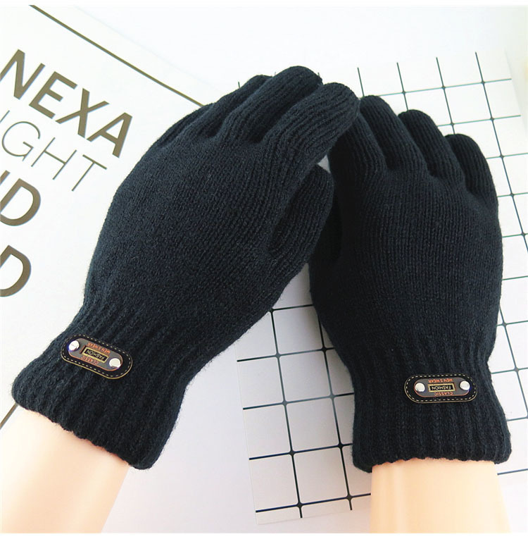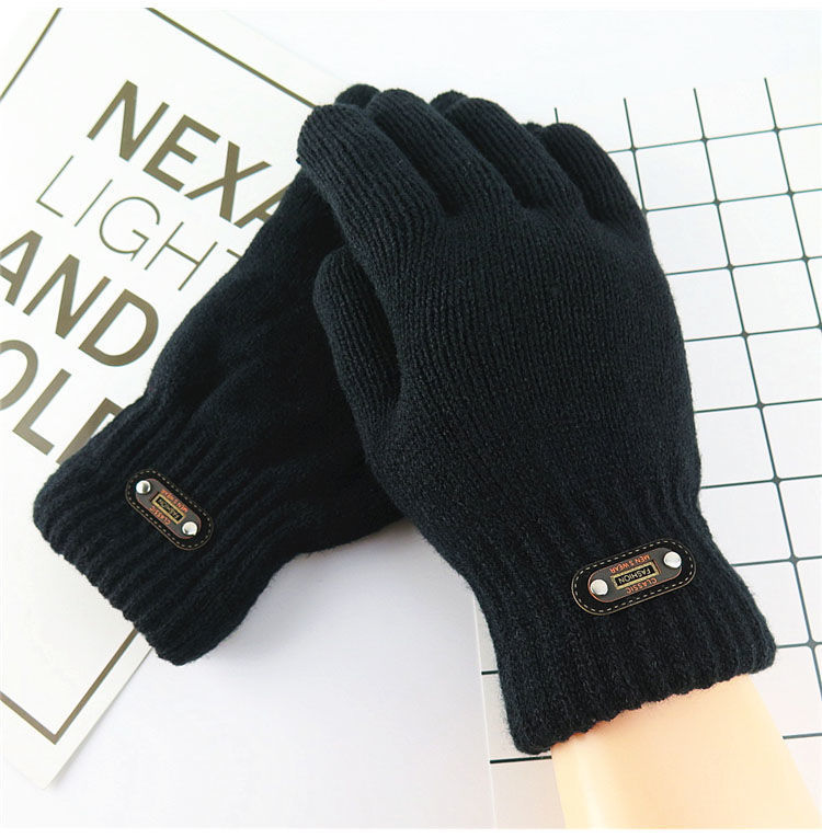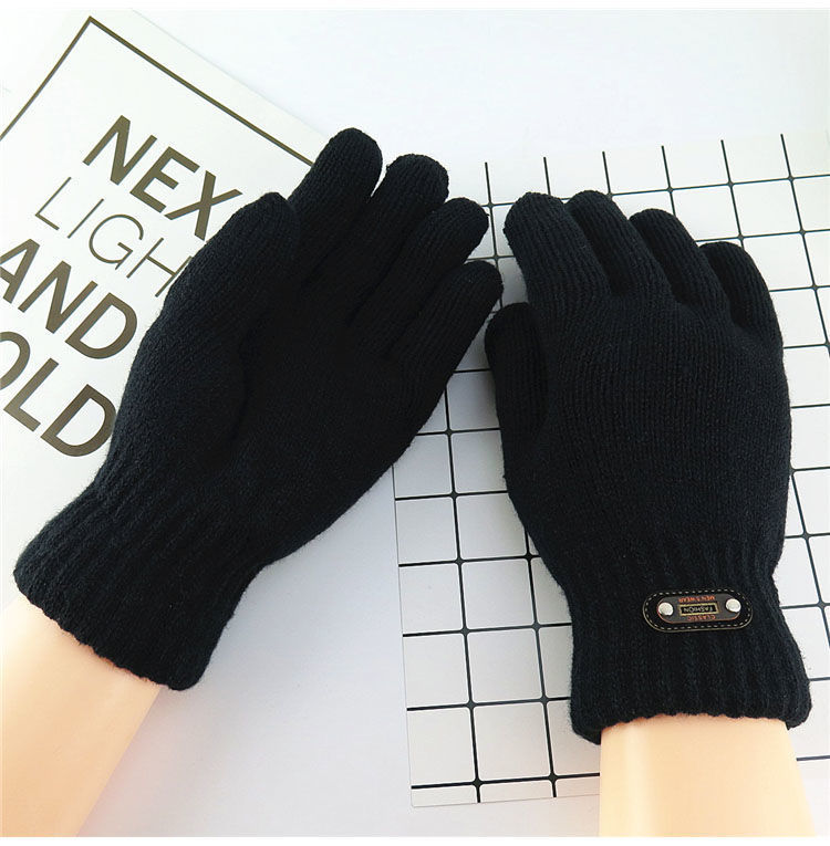 한국 스타일 더블 두꺼운 기모 순수 블랙 남성 장갑 겨울 라벨링 니트 울 올 블랙 따뜻한 남성