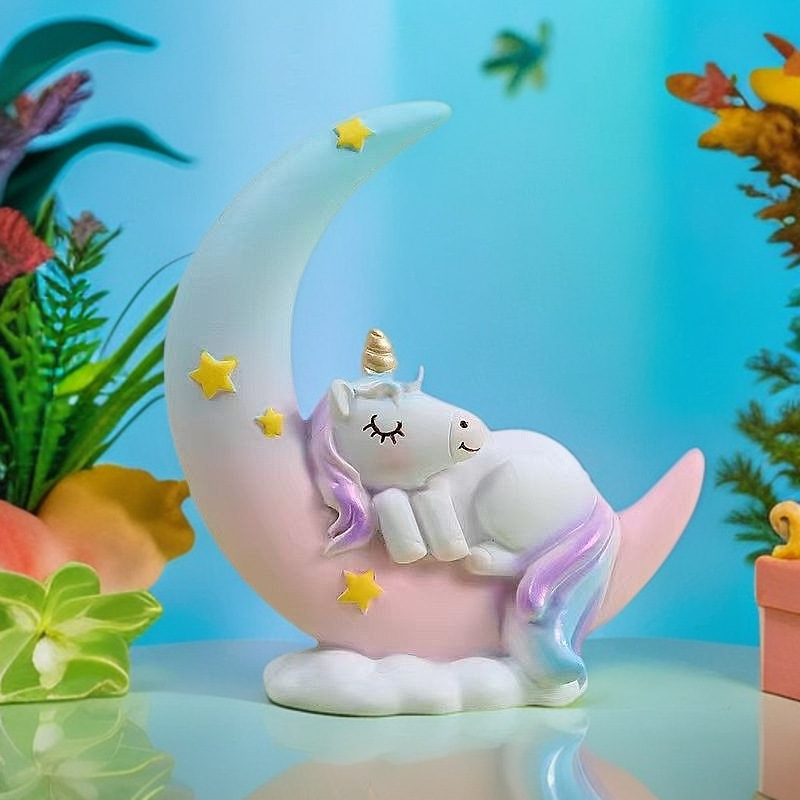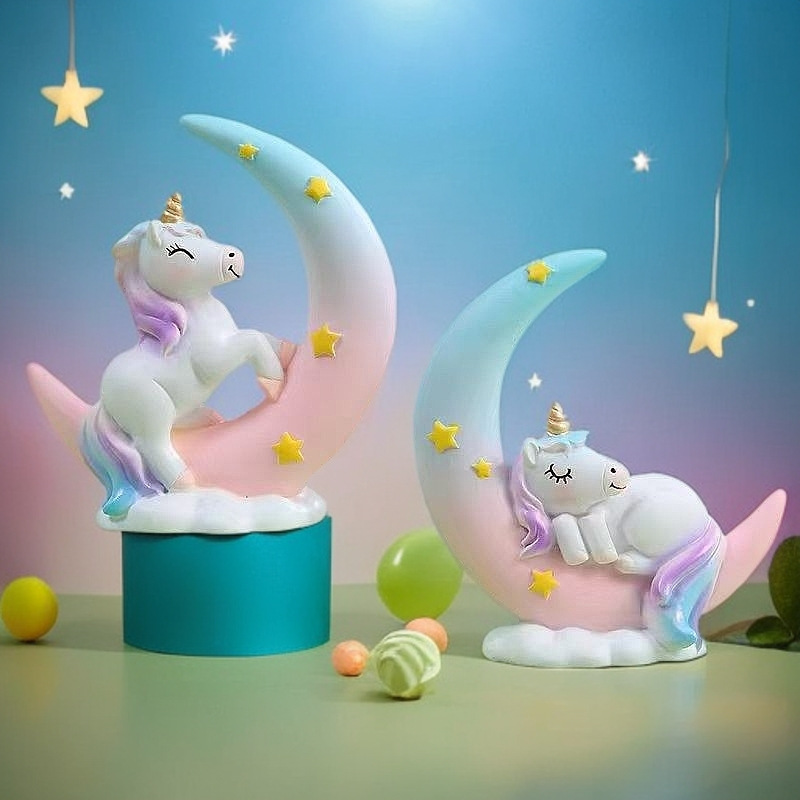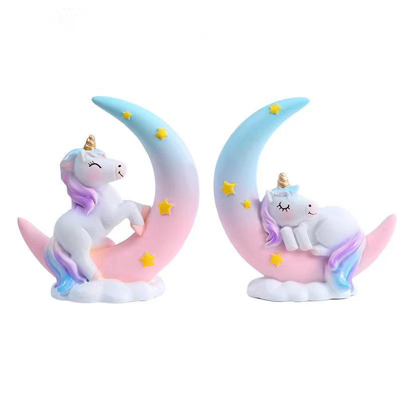 국경 별 문 유니콘 손으로 만든 인형 동상 장식품 홈 장식 수지 공예 선물