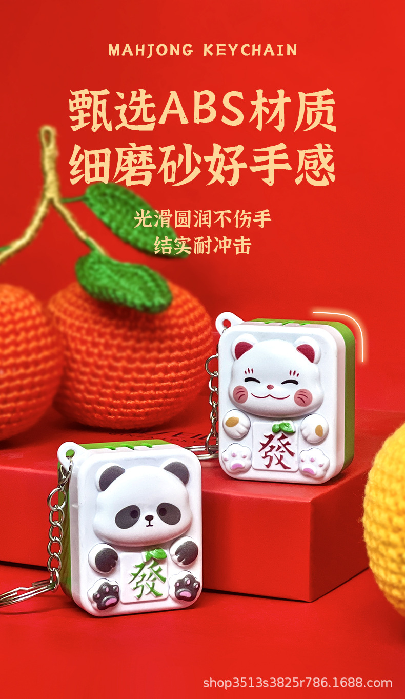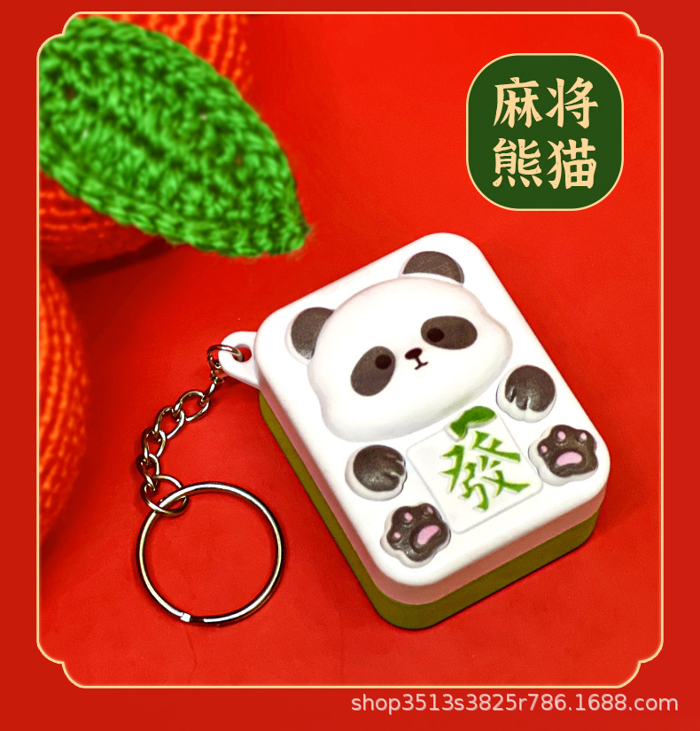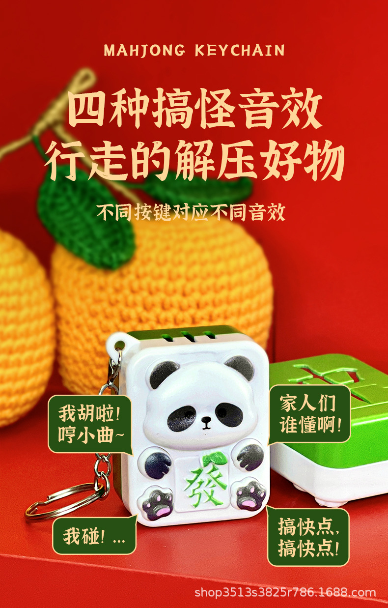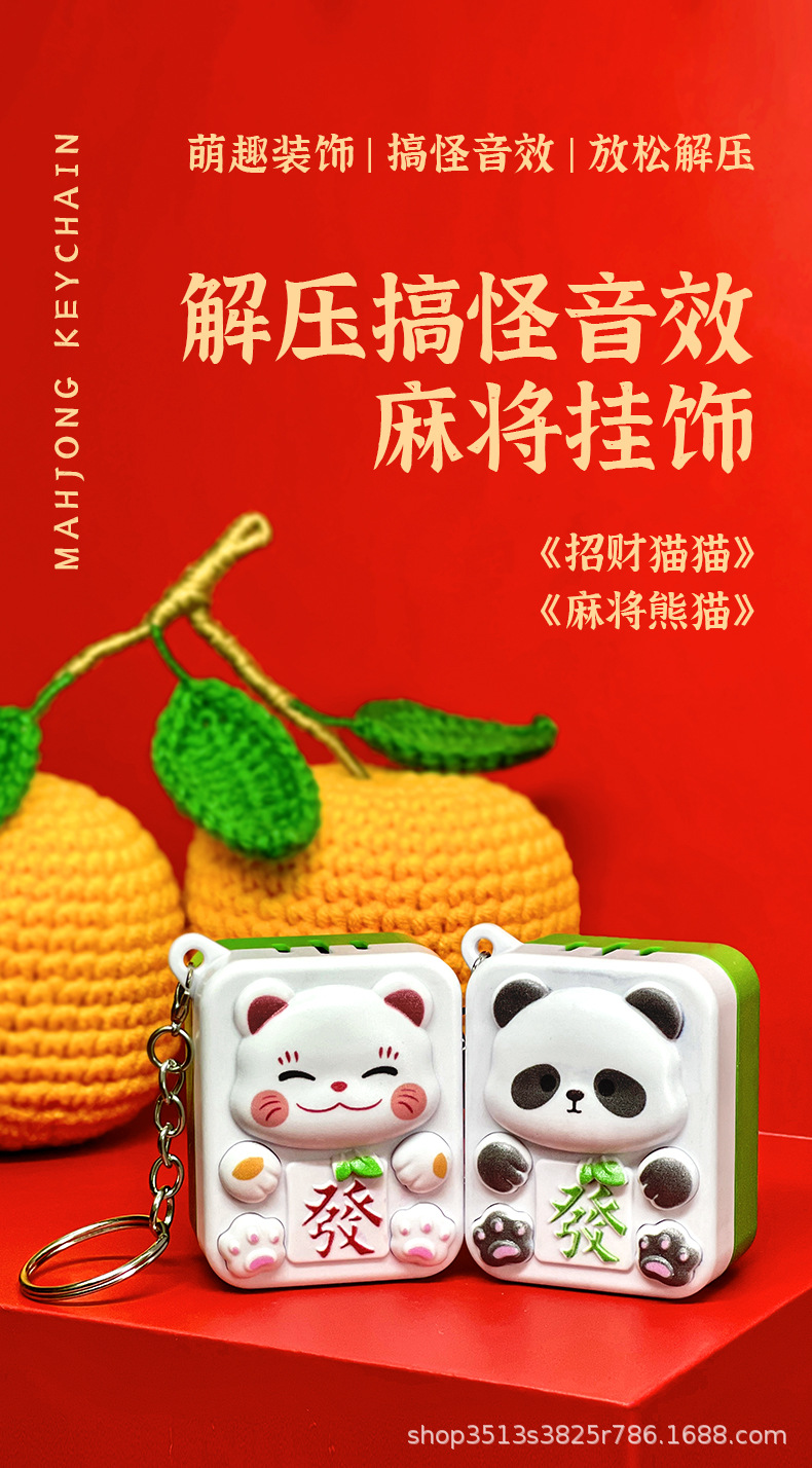 창조적 인 국립 조수 팬더 마작 장난감 행운의 고양이 버튼 음성 좋은 행운 키 체인 매달려 감압 장난감 선물