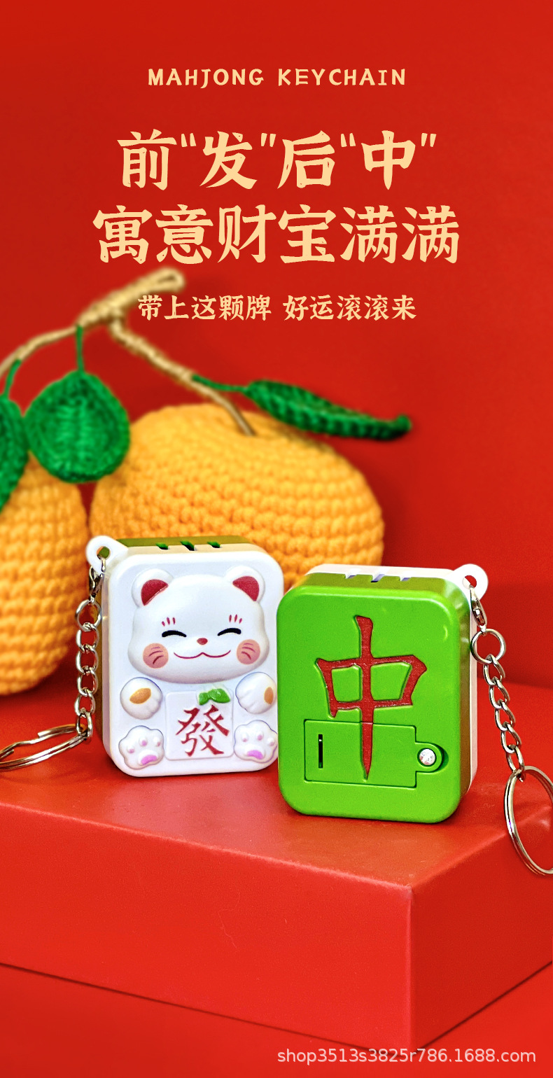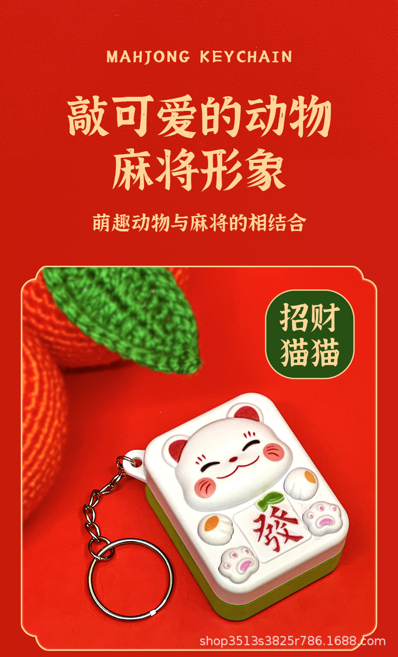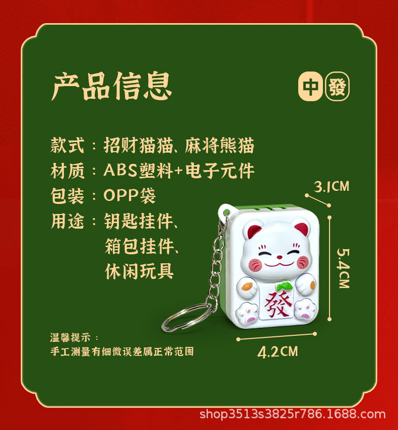 창조적 인 국립 조수 팬더 마작 장난감 행운의 고양이 버튼 음성 좋은 행운 키 체인 매달려 감압 장난감 선물