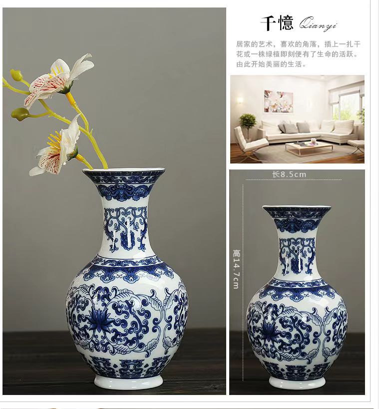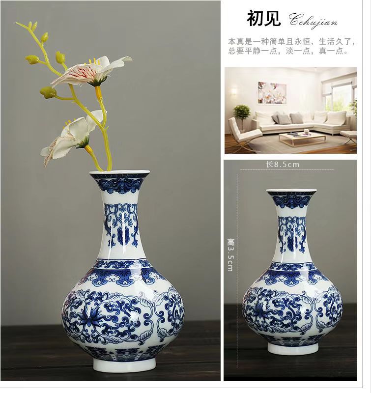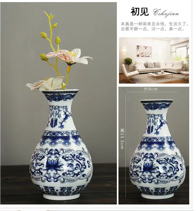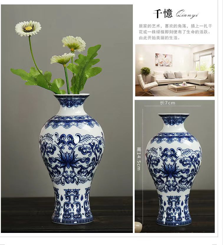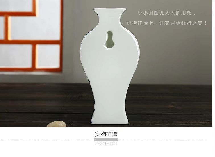 홈 벽 교수형 작은 꽃 병 중국 선 벽 병 파란색과 흰색 도자기 꽃병 세라믹 사무실 장식 공예 장식스토어 가기
