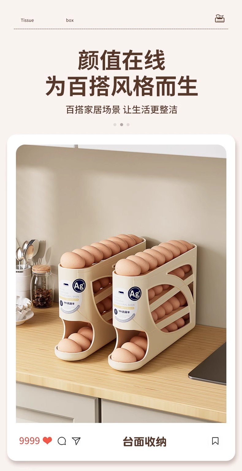 냉장고 계란 보관 상자 측면 도어 보관 주방 용품 자동 계란 롤링 다층 대용량 보관 랙 정리스토어 가기