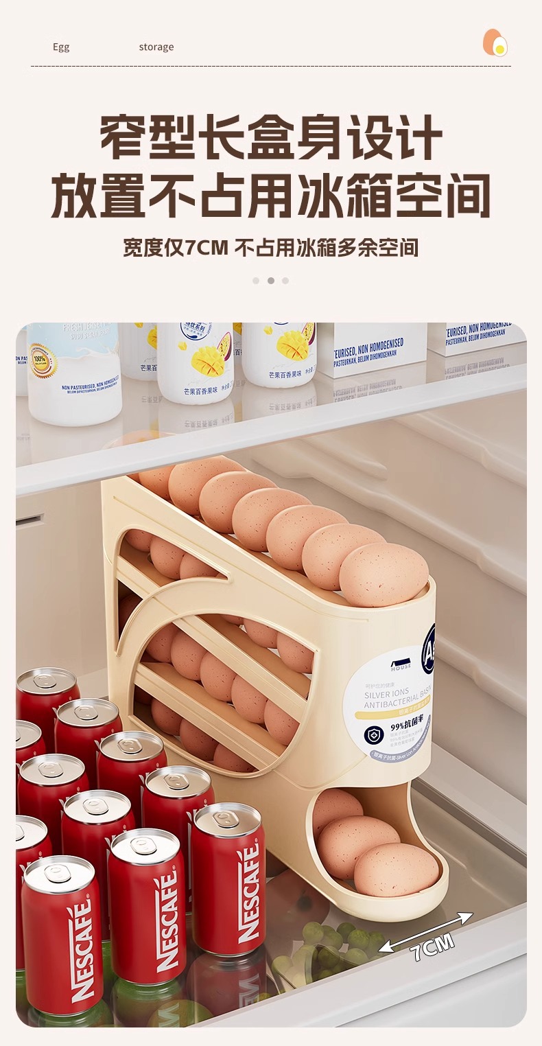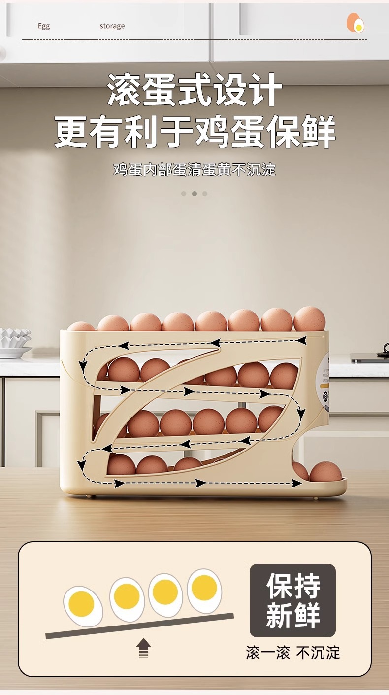 냉장고 계란 보관 상자 측면 도어 보관 주방 용품 자동 계란 롤링 다층 대용량 보관 랙 정리