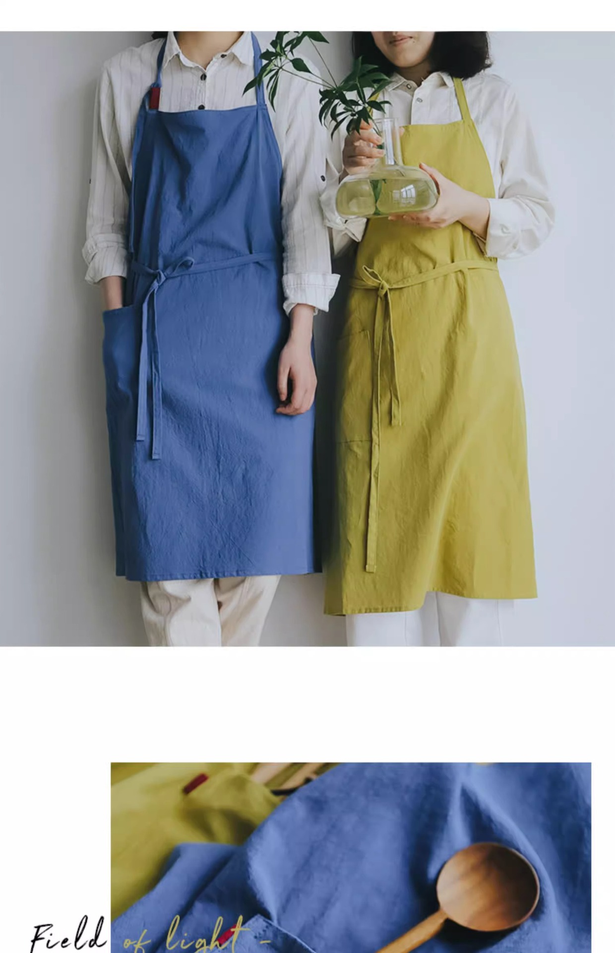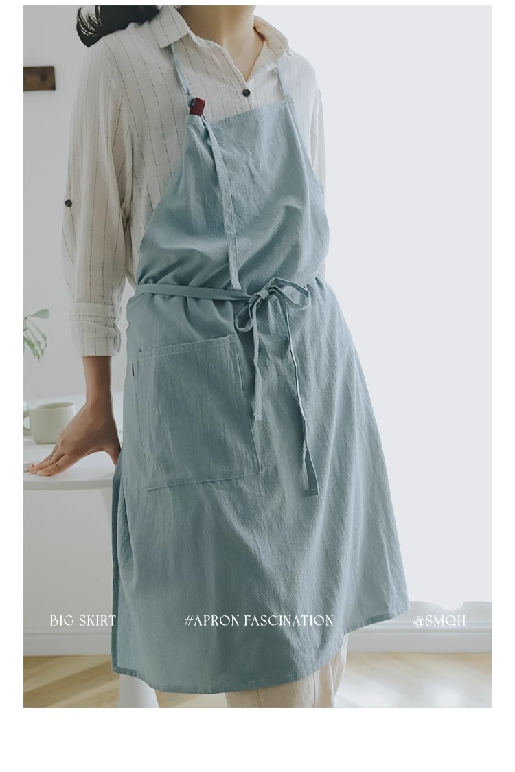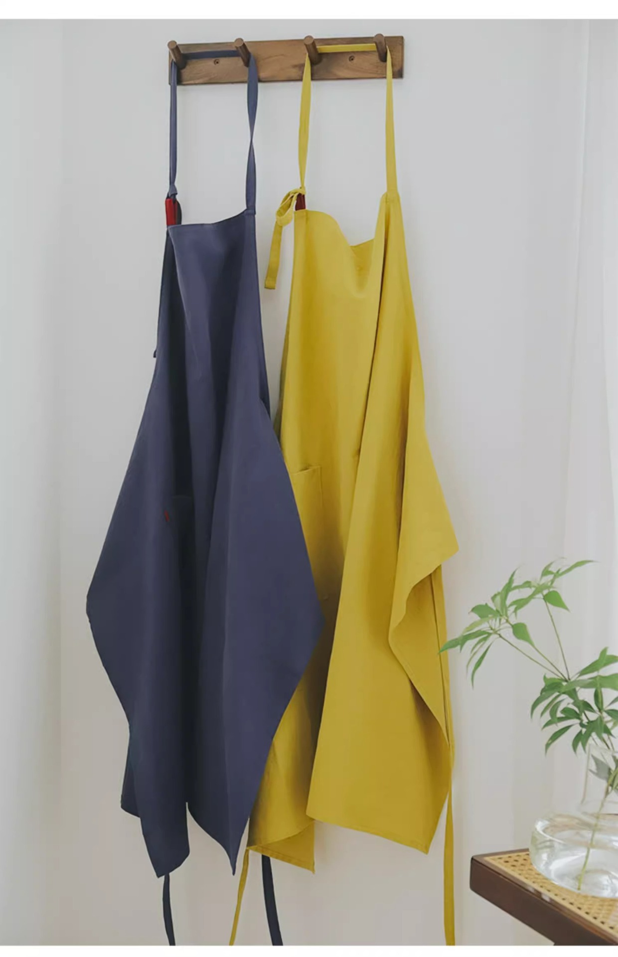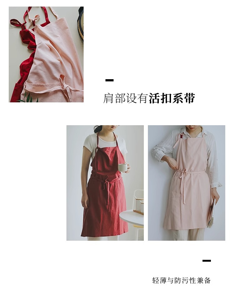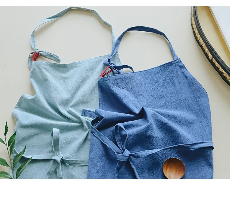 2025 크리 에이 티브 새로운 솔리드 컬러 주방 앞치마 일본식 한국 스타일 민소매 작은 신선한 소모사 면화 성인 앞치마스토어 가기