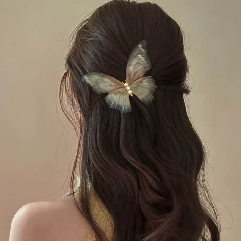 슈퍼 불멸의 숲 스타일 스마트 툴레 나비 날개 머리핀 여성의 신선한 달콤한 하이 엔드 사이드 클립 헤어핀 골동품 헤어 액세서리