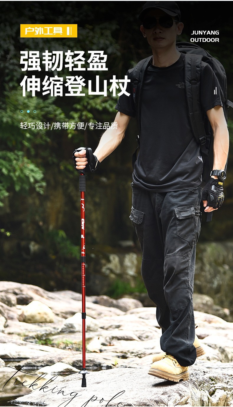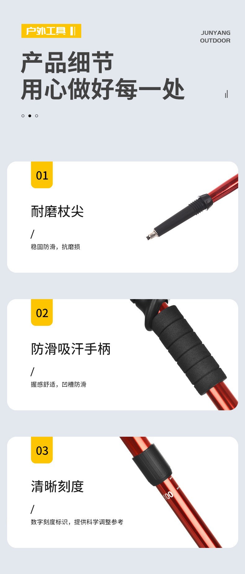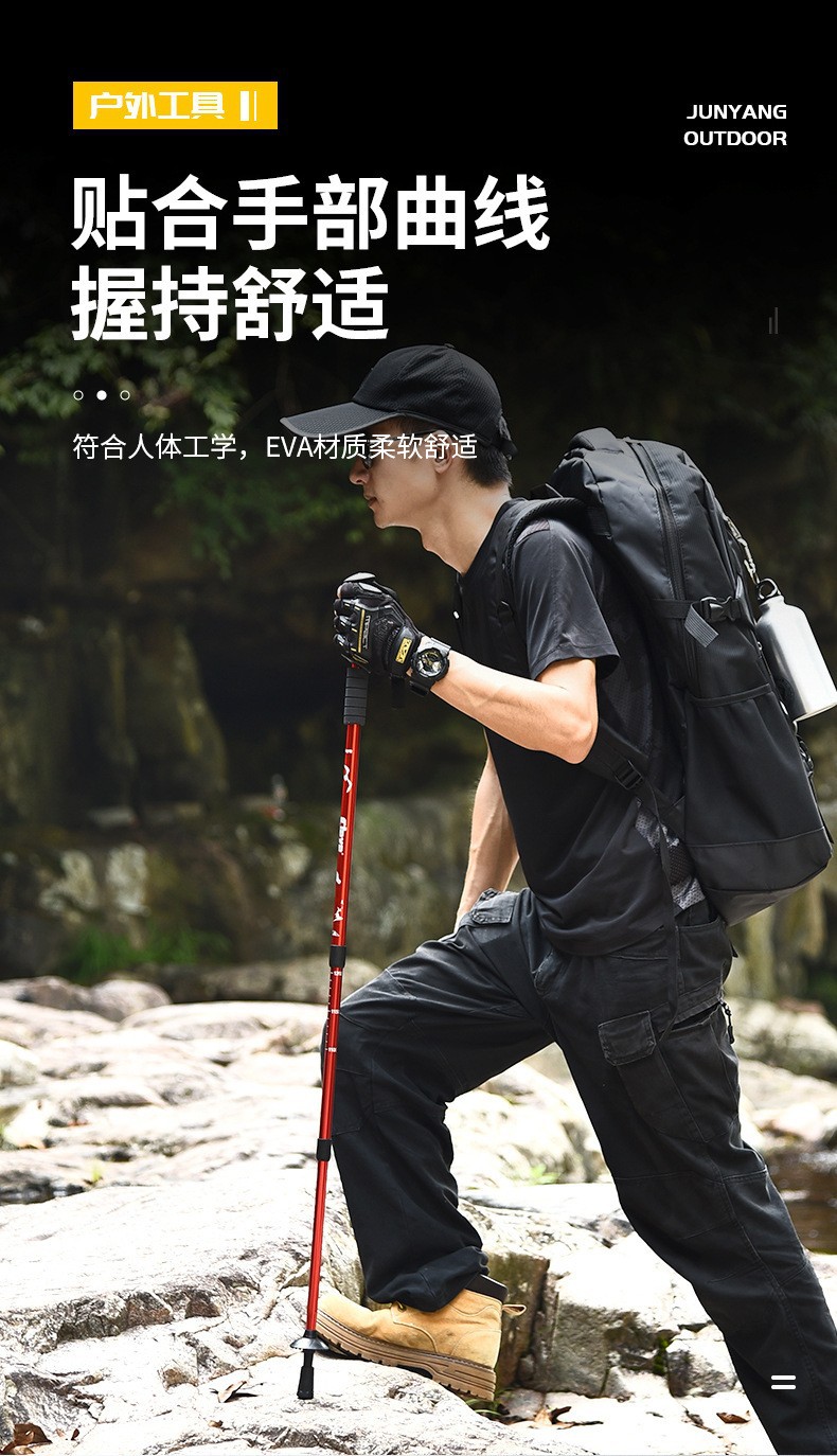 알루미늄 합금 3 섹션 충격 흡수 직선 손잡이 목발 하이킹 등반 야외 용품 등반 스틱